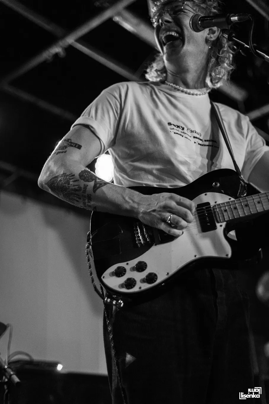 Daniël is sexy – de tekst op zijn shirt bewijst het. Morris, de nieuwe gitarist, speelt met een uitdrukkingsloos gezicht de mooiste loopjes. De backing vocals komen van de Leidse bassist Tijs en drummer Stijn.