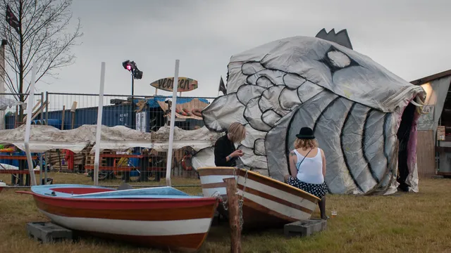 Ik begeef mij naar de steiger bij het meer van het festivalterrein om te zien of er in tegenstelling tot gisteren nu wel vlotten worden gebouwd. Eens kijken of ik nog wat mooie plaatjes vanaf het water kan schieten en ook nog een keer het ‘ter land, ter zee en in de lucht’ gevoel kan ervaren. Ik waag mij aan een groepje voormalige ‘boy scouts’. Het ziet ernaar uit dat zij vaker met dit bijltje hebben gehakt. Eén ervan heeft zelfs een vaarbewijs dus dit moet goed komen. Voor de zekerheid neem ik wel nog even een reddingsvest mee. De reddingsbrigade heeft ons namelijk opgemerkt en vaart verdachte cirkeltjes om ons heen. Het verloopt echter gesmeerd vergeleken met de andere vlotten en we zouden waarschijnlijk ooit terechte winnaars bij het populaire TROS-programma zijn geweest. Met If I had a boat van James Vincent Mc Morrow op de achtergrond een welgekozen moment, dacht ik zo.