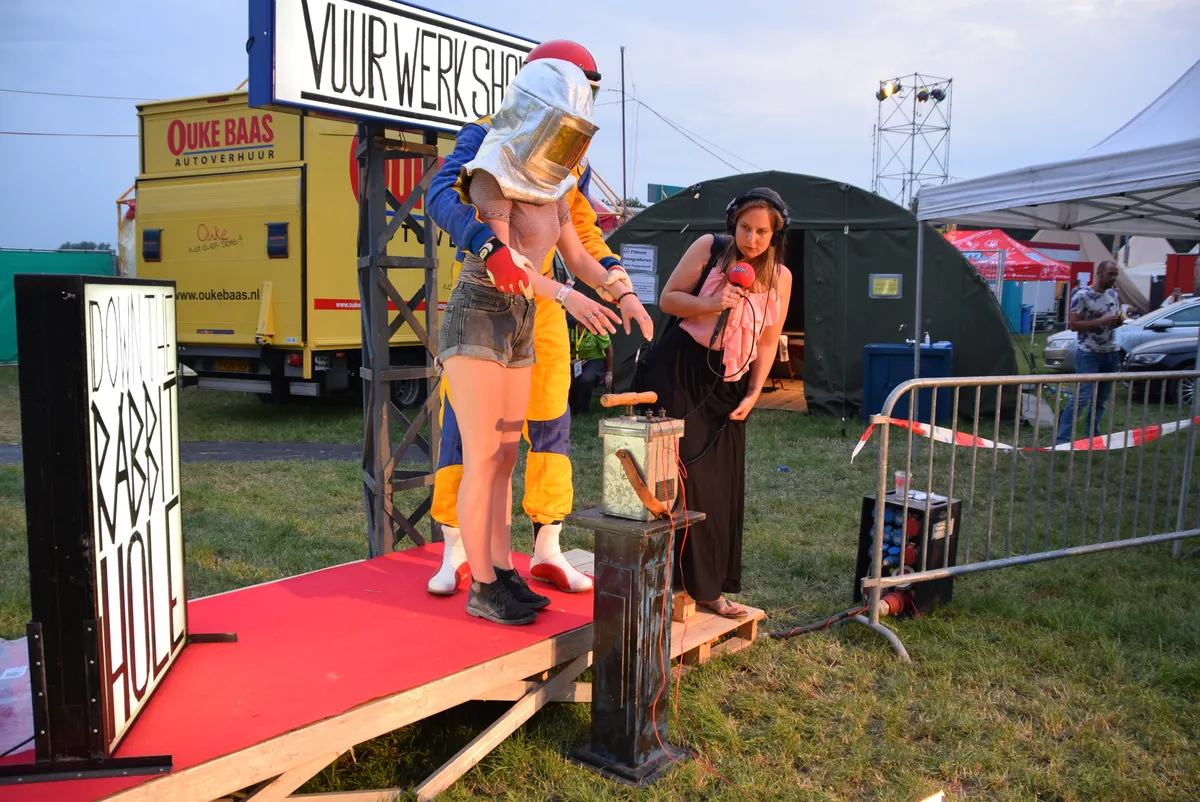 Het is onderhand een terugkerend thema op festivals: waar staan die mensen toch altijd zo lang voor in de rij? Vorig jaar had je het wisselkantoor op Lowlands, in 2012 had je daar ook Get Lost met vele deuren en dansende moslima's in boerka's. En nu op Down The Rabbit Hole: de grote vuurwerkshow. Niemand weet waar het over gaat. Vanaf het terrein ziet de oplettende bezoeker zo nu en dan een vuurpijl voorbij schieten. Op de deur staat een klein bordje met 'vuurwerkshow'. Maar wie heeft er nu daadwerkelijk wat van die show gezien? En in hoeverre kun je spreken van een heuse show? We zochten het uit.