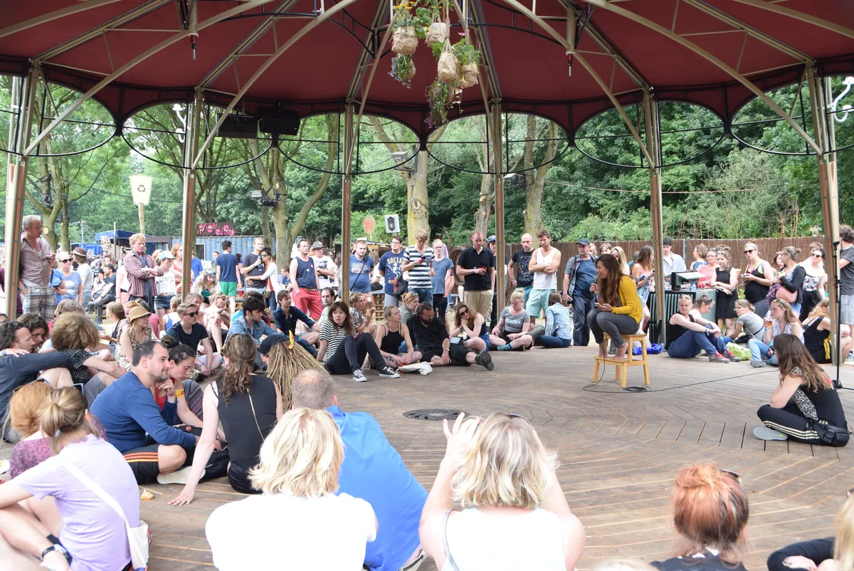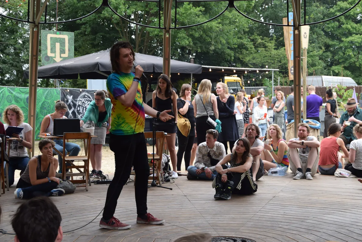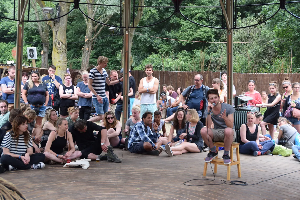 Altijd nog eens een spreekbeurt willen geven sinds de basisschool? Grijp dan nu je kans. In de Tramontana op het Idyllisch Veldje kan iedereen zijn/haar zegje doen op Speakers Corner. Gisteren was de opkomst wat matig, vandaag voelen mensen wel de behoefte hun verhaal onder begeleiding van cabaretière Eva Crutzen met de rest van de wereld te delen. Best spannend natuurlijk, voor een hele groep je verhaal doen, niet wetende of je verhaal aanslaat bij het publiek.