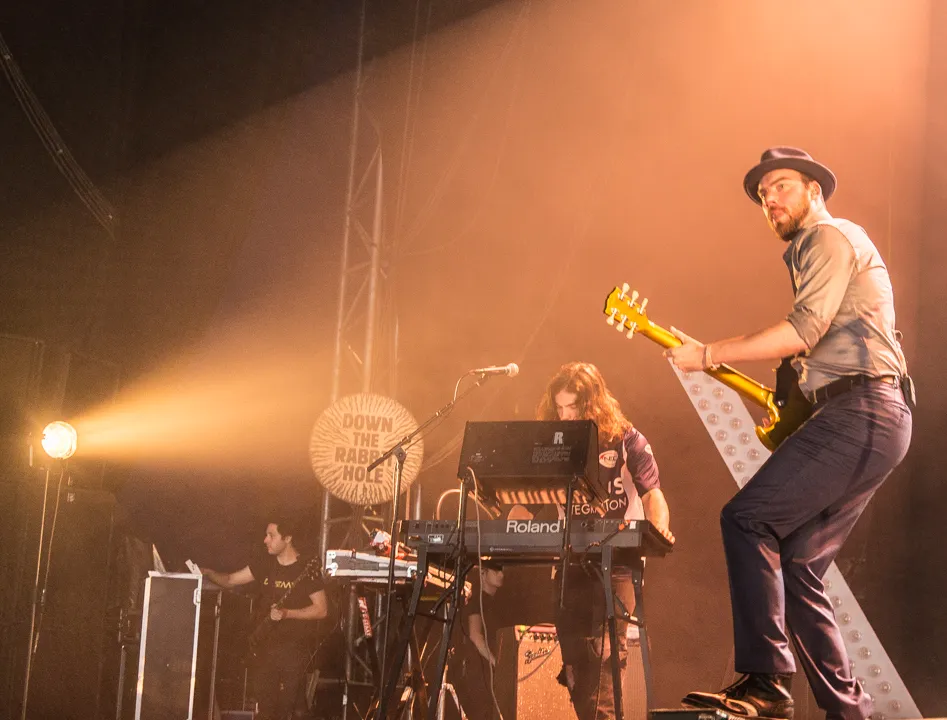 Het is vooralsnog een vrij gezapige zaterdag hier op Down The Rabbit Hole. Veel regen, modder, publiek dat er toch wat minder zin in heeft dan gisteren. The Cinematic Orchestra heeft de laatste optimist ondertussen in slaap gesust. Maar nu is daar de zon opeens. En de Nijmegenaren van De Staat, in een afgeladen Hotot. Nu moet het gebeuren!