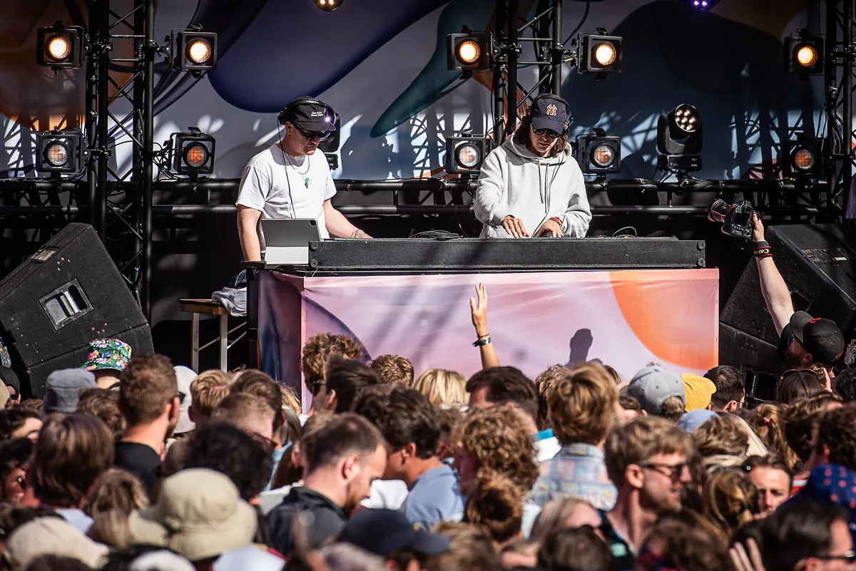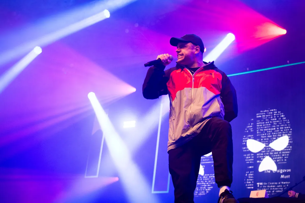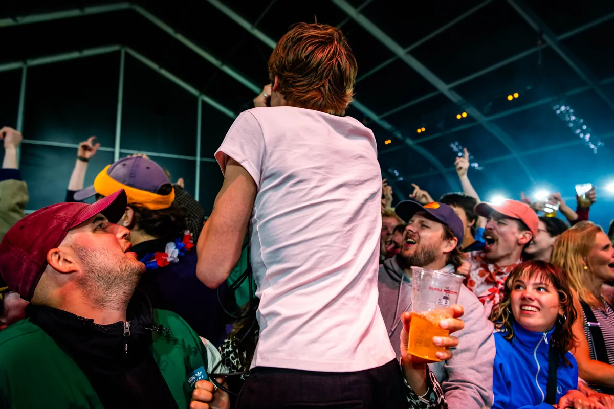 Nederland speelt vanavond zijn kwartfinale op het EK voetbal en hoewel er nog geen honderd meter verderop een groot scherm staat opgetuigd kan Kneecap in de Fuzzy Lop daar moeiteloos mee concurreren. De politiek geladen teksten van het republikeinse hiphoptrio uit het Noord-Ierse Belfast zijn niet altijd te volgen, maar de vurigheid waarmee ze het publiek in worden geslingerd en de agressieve beats waarmee ze gepaard gaan zorgen vanaf de openingsklanken voor een kolkende, springende massa over de volle breedte van de tent.