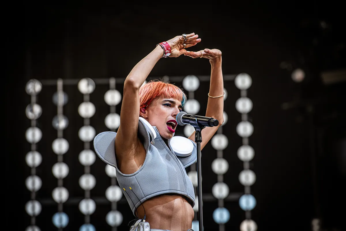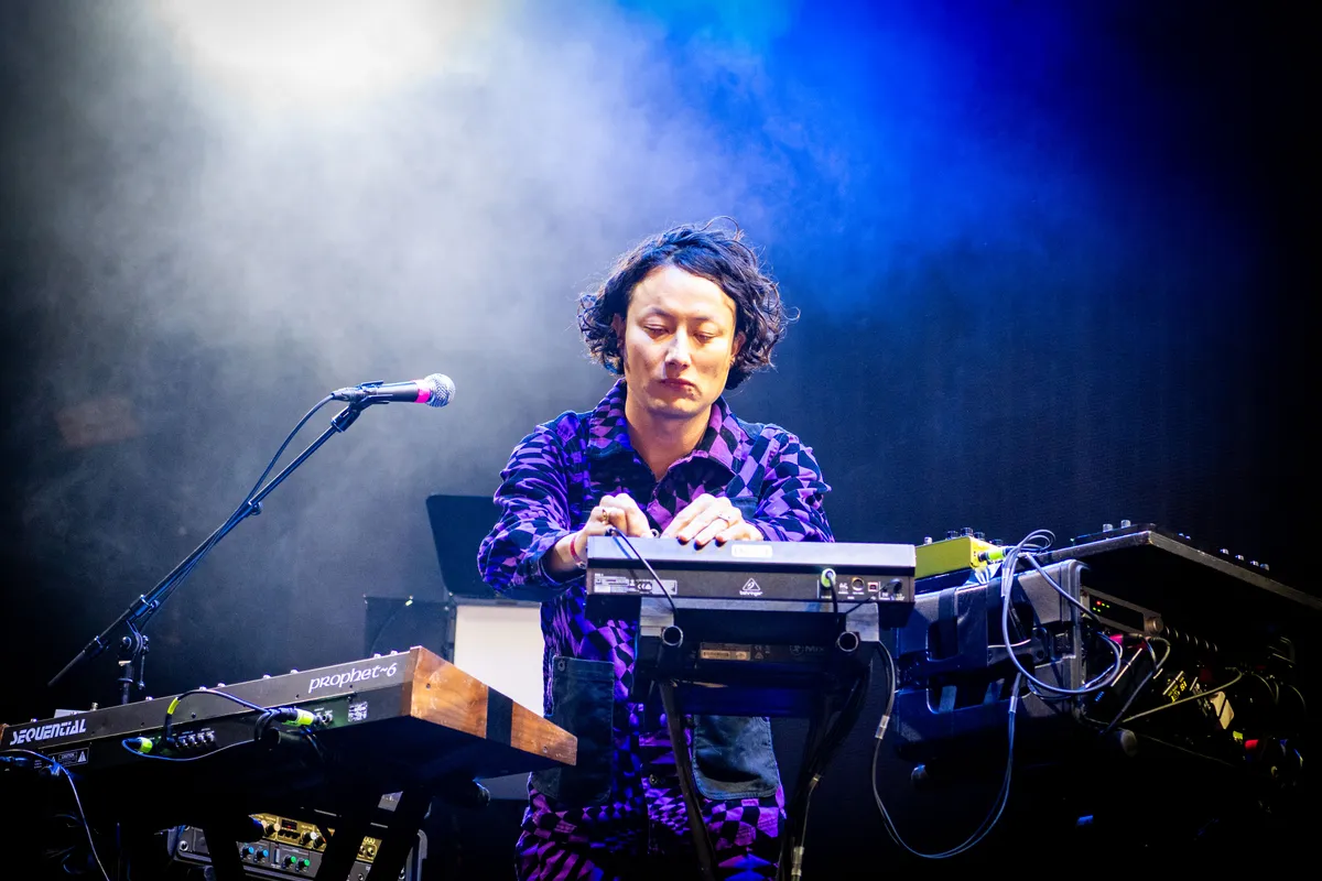 Het optreden van L'Impératrice begint met een lichte vertraging, omdat de stevige wind teveel vat dreigt te krijgen op de grote, hangende middenveld-speakers en deze uit voorzorg naar beneden worden getild. De opzwepende Parijse synthpop was een grote verrassingshit op DTRH 2022, toen nog in de Teddy Widder-tent. Vandaag blijkt op de grote Hotot buiten-stage dat men evengoed het grote veld in beweging krijgt. Op het podium vragen de glitterbackdrop en de band's matchende outfits met oplichtende lampen wellicht om wat minder daglicht, maar de gladde retro space-disco reikt tot ver achter op het terrein, waar het ook voor de casual graszitters een prima achtergondbeat verzorgt. (MD)