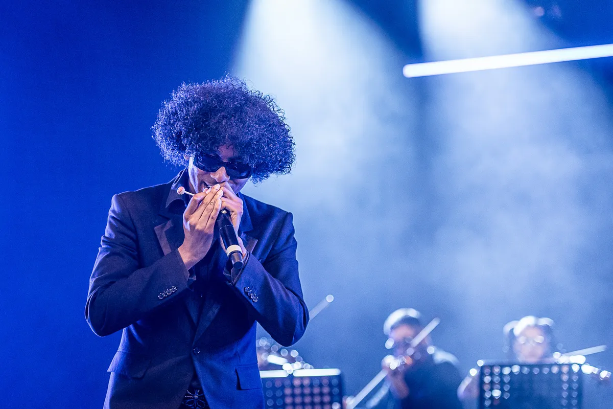 Het blijft een hoogst opmerkelijke combinatie, een rapper in een zwart maatpak en een lolly in de hand, op hetzelfde podium als een klassiek orkest. Samen goed voor 24 man. sor z’n stem is zo doordrenkt met autotune dat het overduidelijk een stijlkeuze moet zijn. Lang niet altijd is de wisselwerking tussen hem en het orkest raak, maar verspreid over de hele show komt sor met een ruime voldoende door de keuring. Al is het alleen al omdat het bijzonder uniek is wat hij op een podium neerzet. (TdG)