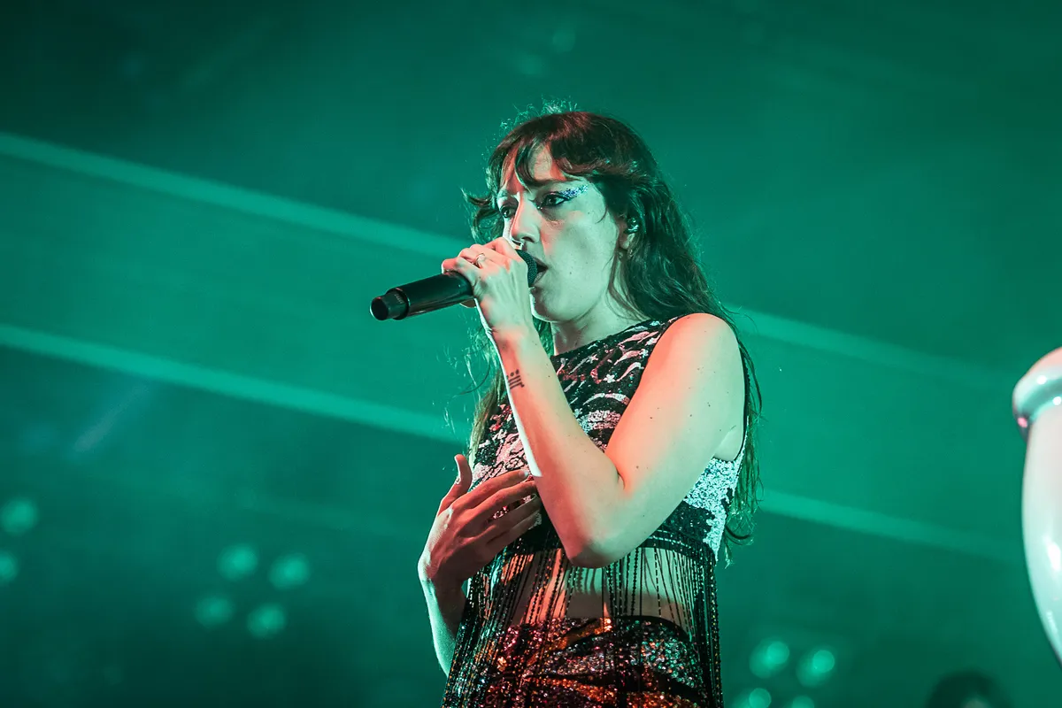 Een uur na de vorige show bij de main stage ziet de dag er weer heel anders uit. Maar hoe onuitnodigend het natte veld voor de Hotot op dit moment ook is, het stroomt goed vol voor de show van Jessie Ware. En terecht, want ze maakt er een onvervalst pop-feest van. Met onder meer ‘Save A Kiss’, ‘Beautiful People’ en ‘Free Yourself’ schudt ze het ene dansbare nummer na het andere uit de mouw. Natuurlijk wordt dat in de voorste rijen met veel enthousiasme ontvangen, maar het echte feest bevindt zich achter op het veld. Grote groepen festivalgangers hebben hun krachten gebundeld en dansen, gehuld in ponchos, gecoördineerd dezelfde pasjes als één grote flashmob. Weer of geen weer, het feest moet - en gaat - door! (RH)