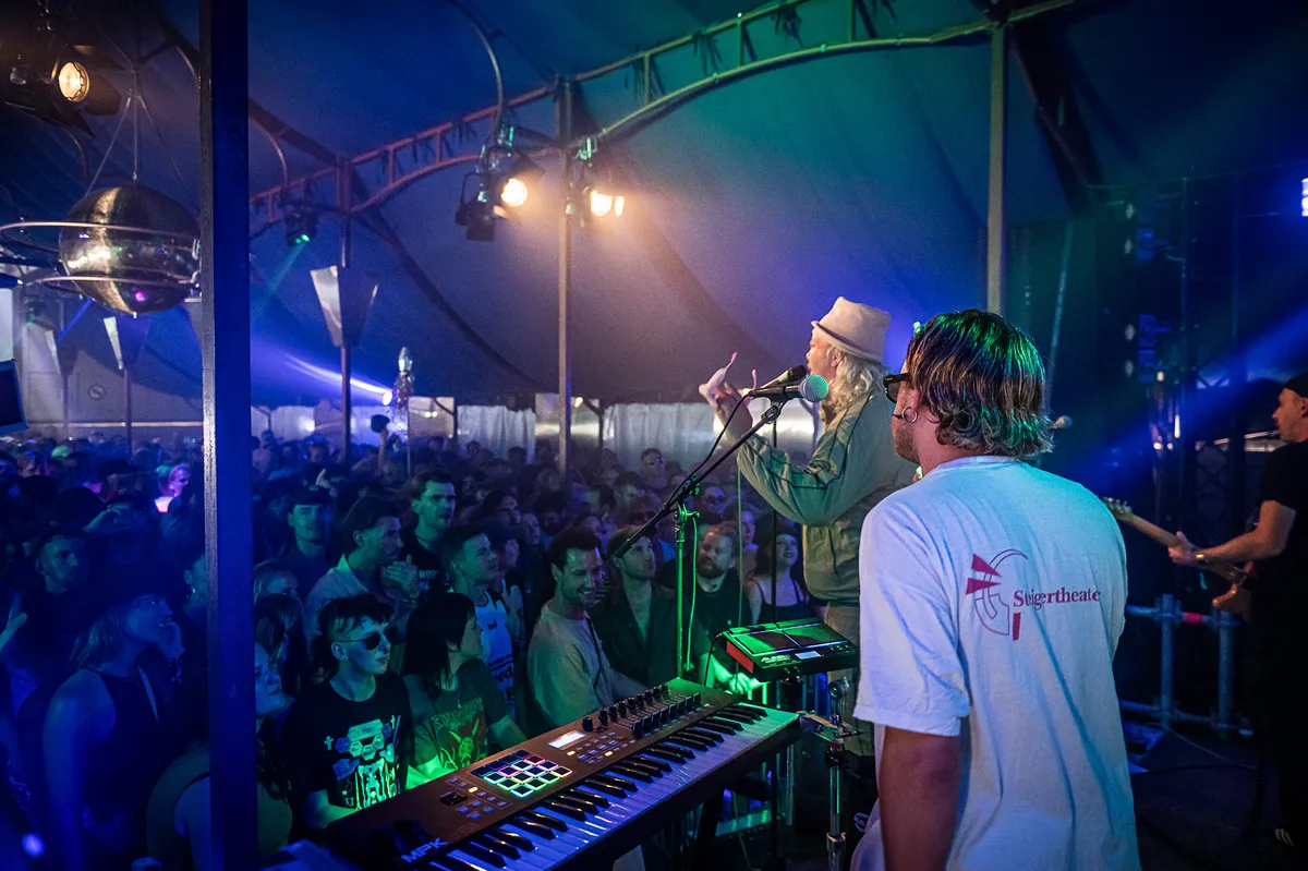 De traditionele Fuzzy Lop is dit jaar min of meer van plaats geruild met de Teddy Widder, wat in combinate met deze toch al onconventionele tentnamen voor wat extra logistieke verwarring kan zorgen. Rogê,de eerste act in de ‘Fuzzy’ is, vanwege hun éigen logistieke problemen, op zeer korte termijn vervangen door Nusantara Beat. Vorig jaar al te zien op DTRH laat de Amsterdamse band met hun aanstekelijke mix psychedelische rock en exotische klanken zich misschien nog het best typeren als Indonesische versie van Altin Gün. Het catchy geluid doen het prima bij de snel gevulde tent en het voelbare spontane karakter van de set geeft het allemaal juist iets extra ontwapenends. (MD)
