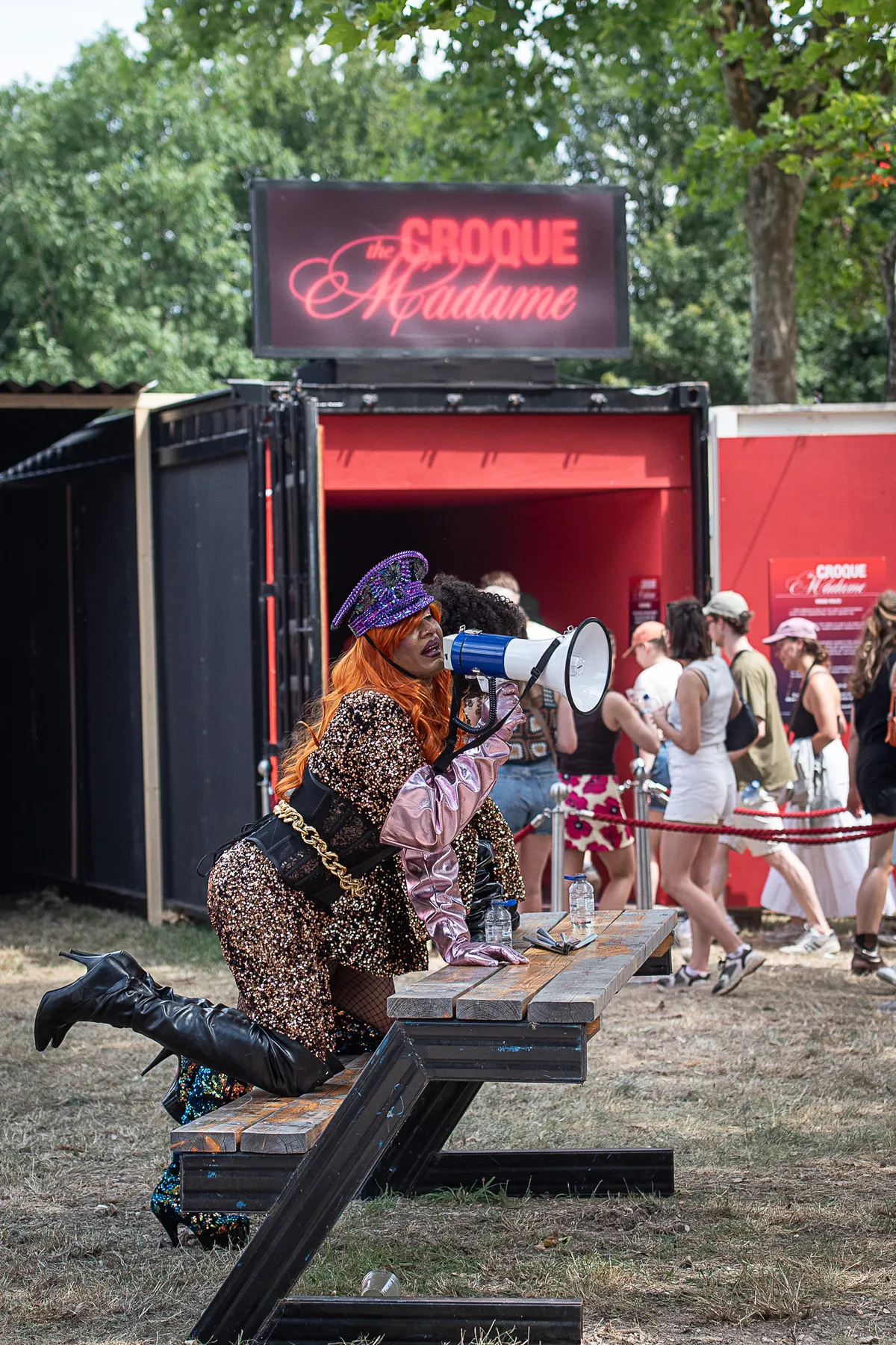 De teruggewonnen energie kan men daarna gelijk weer spenderen bij Amyl and the Sniffers. Na een memorabel optreden in de tent in 2022 zijn de Australische punkers inmiddels gepromoveerd tot de main stage van de Hotot. Geen eenvoudige opgave om hun energieke muziek in het volle daglicht over de grote ruimte voor het podium naar het publiek te lanceren, maar de band heeft de laatste jaren een hoop ervaring gedaan op de grotere podia. Al snel ontstaat er een kolkende moshpit, enkel teruggehouden door de scheidende barrier in het midden van het veld. (MD)