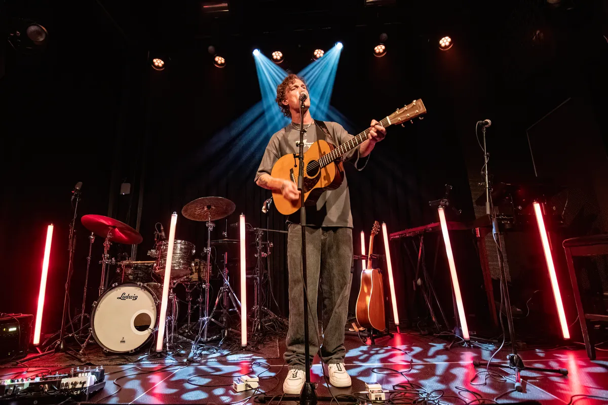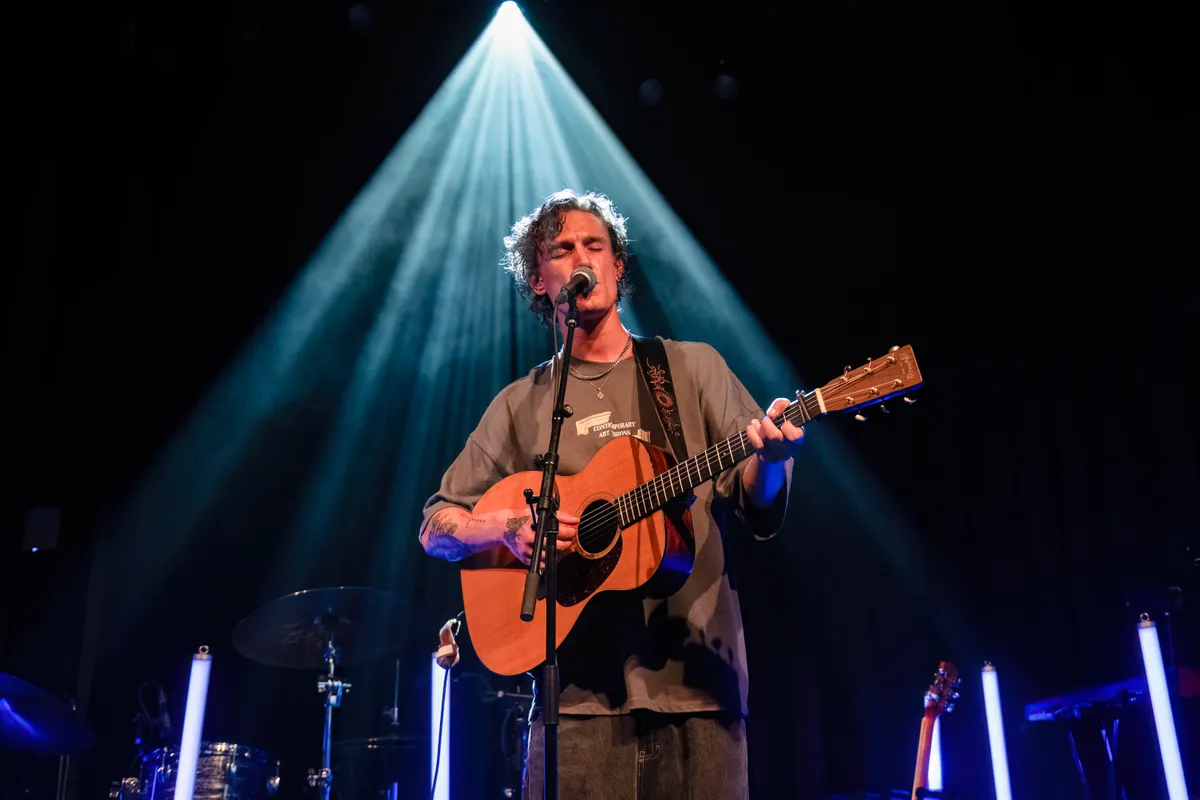 Voordat DUNE Aimee haar releaseshow doet, staat de Zwolse songwriter MICHA. Micha Bartelds zoals hij eigenlijk door het leven gaat, heeft vrij recent zijn EP Dead End Of A Dream uitgebracht en met zijn akoestische gitaar laat hij daarop zijn songs horen. In Dead End of A Dream vertelt MICHA het verhaal van verliefd worden op iemand die al verliefd is op een ander. Op de avond laat hij deze songs doorklinken, zoals het verhaal wat hij vertelt dat hij is uitgenodigd om op het huwelijk van zijn vriend een liefdeslied te laten horen. De tragiek in de liefde klinkt duidelijk door in het materiaal en MICHA is een prima publieksbespeler door na ongeveer tien minuten de zaal in te gaan en in het midden zijn liedje te laten horen, waarop het publiek meezingt. Op deze manier ontstaat er een intieme sfeer, waar MICHA zich wel bij voelt. Het is niet allemaal donker, sterker nog, in zijn teksten klinkt ook de hoop door. Meeslepend is het materiaal van de Zwolse songwriter ook. Dat blijkt wel bij de afsluiting, want MICHA sluit af met een iets minder blij liedje zoals hij zelf zegt.