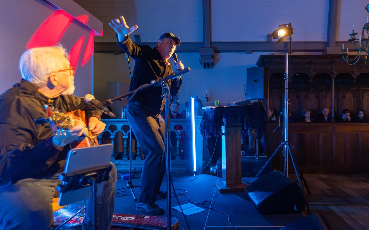 De avond eindigt in stijl met broeder Dieleman, ditmaal in de Protestantse Kerk. Samen met Ries de Vuyst brengt hij een reeks muzikale spookverhalen uit Zeeuws-Vlaanderen. Met droge humor en gevoel voor spanning vertelt hij over mysterieuze figuren als Jane Pape en Dirk van Drongelen en tal van bovennatuurlijke gebeurtenissen. Het publiek luistert geboeid, soms lachend, soms zichtbaar ongemakkelijk. En dan als afsluiter het engste verhaal: over de ossaert, die in het donker op je rug springt. ‘Waar gebeurd, hè Ries? Ik hoor jullie lachen, maar je moet nog naar huis hè?”