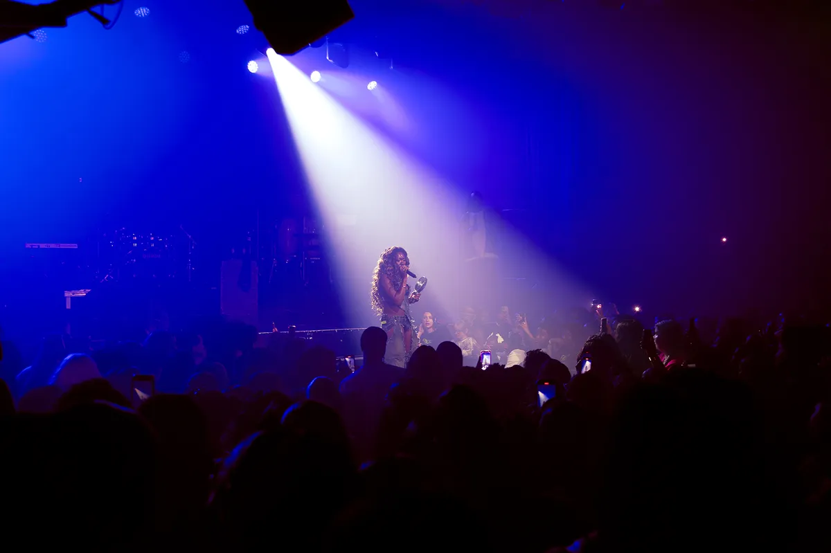 Na een DJ pauze klinkt er om half tien het geluid van een paar hakken door de speakers. In een keer gaan alle telefoons de lucht in om Dylisa’s entree te filmen, het lijkt net afgesproken. En dan komt ze het podium op: ,,Ik ga jullie meenemen in verschillende fases in mijn leven”, zegt ze. Het eerste nummer schrijft ze als ze 21 is en zich verloren voelt in het leven. De lichten tinten roze en met Dylisa zingt het publiek met haar mee.