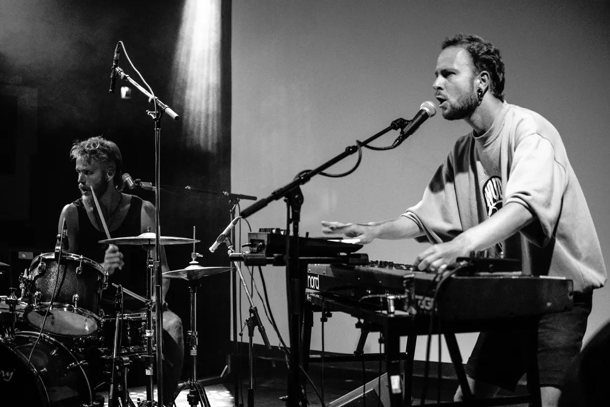 Ook hier zien we een duo op het podium. Teun-Joshua Brandt doet de vocalen en zal zich een slag in de rondte bewegen achter de toetsen. Jelte Fossen zal een zwaar stuwende en energieke factor op zijn drums blijken te zijn, met de uitstraling van een zwaar rockende leadgitarist. Als WUDU SJON mengen ze verschillende muzikale stijlen tot een dansbaar geheel. De invloeden zijn legio: er zijn elementen te bespeuren van metal, progressive rock, Ethiopische jazz, en ska. Heel recent hebben ze nog gespeeld op de festivals Art Carnivale en Vogelpop. Je merkt vanaf het begin dat Brandt en Fossen goed zijn ingespeeld voor het optreden van vanavond.