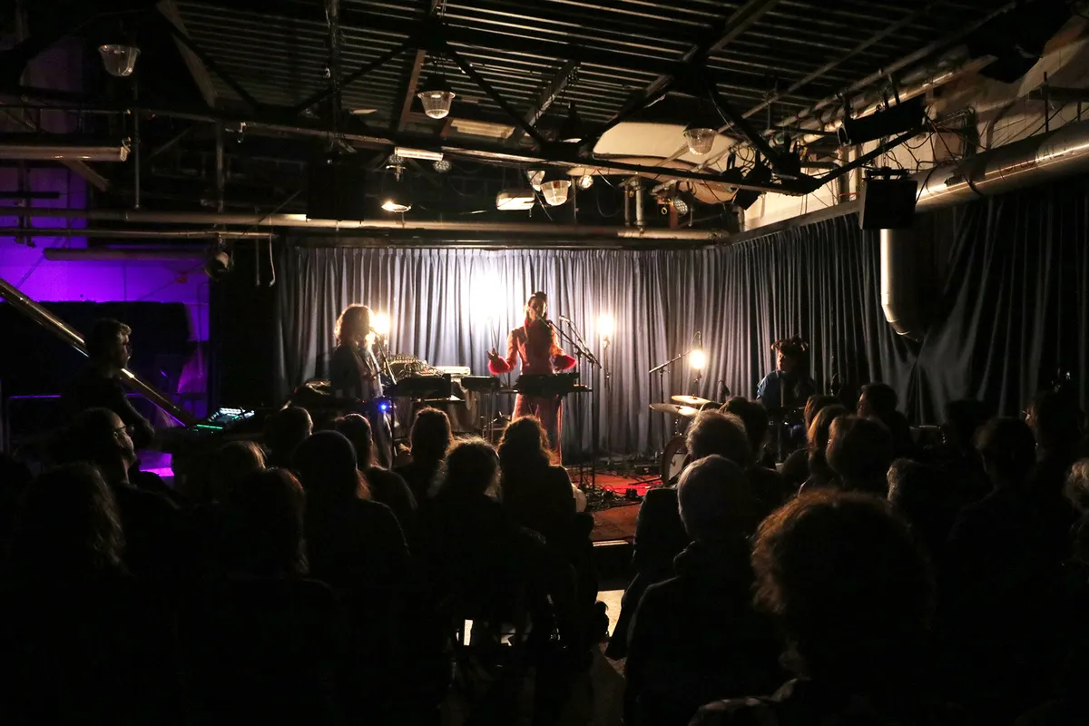 Maar eerst is het de beurt aan het voorprogramma. Onrust is het soloproject van de Belgische elektronische kunstenaar Wendy Mulder en in tegenspraak met de naam brengt zij rustige psychedelische ambient techno ten gehore. Ze speelt op een balkonnetje hoog boven het café van Brebl. Vanuit de zaal was ze niet of nauwelijks te zien en was er ook jammer genoeg geen interactie met het publiek. Na een half uur spelen verliet ze, vrijwel ongezien, weer haar podium en was het – na een korte pauze – de beurt aan de bouwmeester van de avond.
