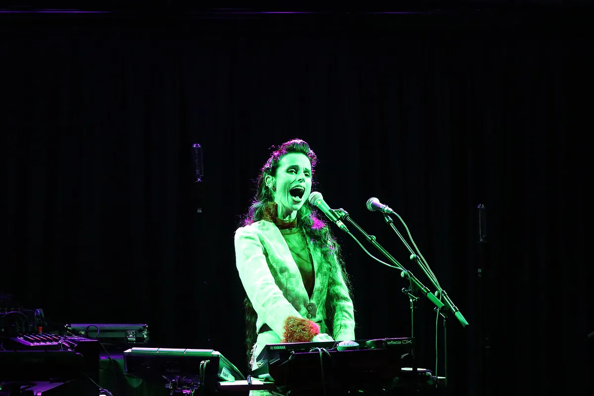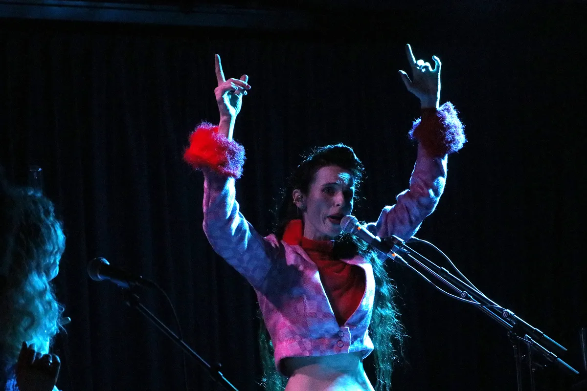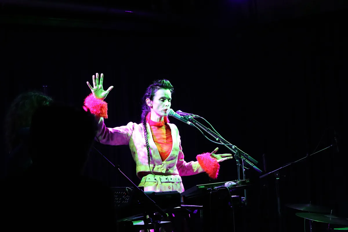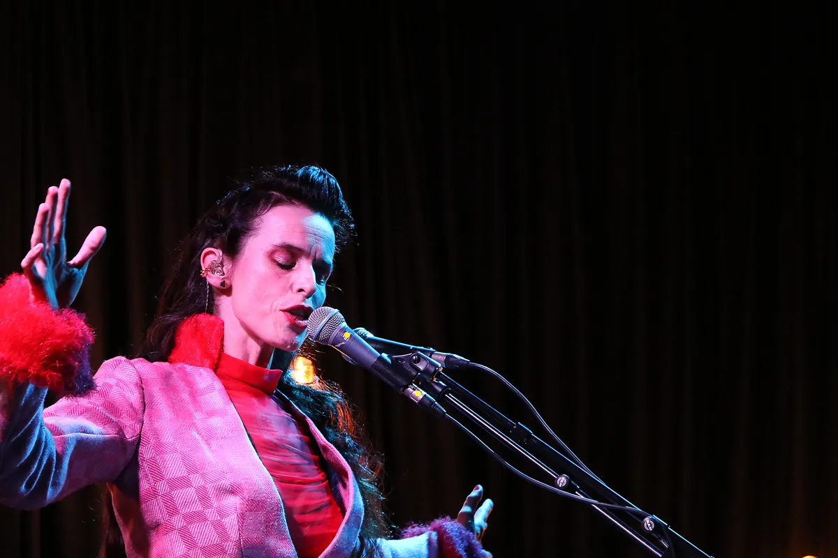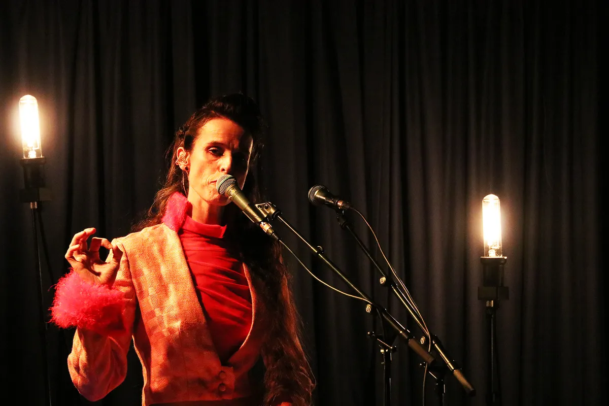 Als Stefanie het podiumpje betreedt is het meteen gevuld. Niet alleen dankzij haar volumineuze kleding want haar enorme persoonlijkheid vult de zaal tot in de kleinste uithoeken. Stefanie zingt niet voor zichzelf maar is ook voortdurend in contact met elk individu in het publiek.