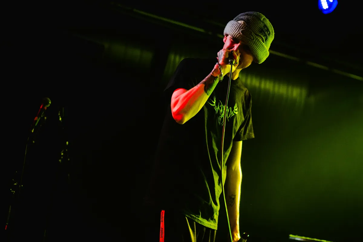 Trix is een Nederlandstalige rapper die bij Mood Bored nog vooraan stond mee te swingen. Een half uur later mag hij zelf proberen het publiek voor zich te winnen. Dat blijkt de Utrechtse artiest gemakkelijk af te gaan, er staat namelijk een heel vriendenleger vooraan om hem aan te moedigen. Trix neemt ze mee in een therapiesessie met emo rap nummers waarin hij de nare periodes en gebeurtenissen uit zijn leven beschrijft. De show start met een boodschap dat je niet alleen bent in je emoties of depressie, hij heeft namelijk zelf ook zware periodes meegemaakt. Trix speelt op een interactieve manier met zijn publiek, dat het nummer ‘Suïcide Doors’ luidkeels met hem meezingt. De rapper staat niet alleen op het podium: zijn vriend en muzikale ondersteuning Stino staat naast hem, samen met zijn DJ die compleet in het zwart aan de rand staat. Aan het eind van de show neemt Nyctonian een hoofdrol op zich, wanneer Trix zijn teksten combineert met de drum & bass bij het swingende nummer ‘PEPPERONIHAZE!’ waarop het publiek uitbundig meedanst. Trix heeft een enorm voordeel met zijn grote vriendengroep, die de rest van het publiek meetrekt in de energie en interactie van zijn act, wat leidt tot een mooie show.