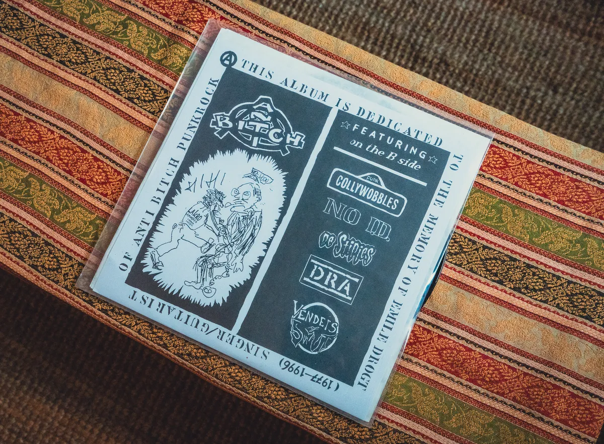 “Dat is de plaat van Antibitch uit 1997, een Zuid-Drentse punkband uit de jaren negentig. Emile Drogt, de oom van mijn vriendin, was de gitarist en zanger van de band, haar vader de bassist. Het is een memorialplaat voor Emile, die heel vroeg is overleden. Ik kreeg deze plaat vorig jaar. Er zijn er maar zo’n tweehonderd van.”