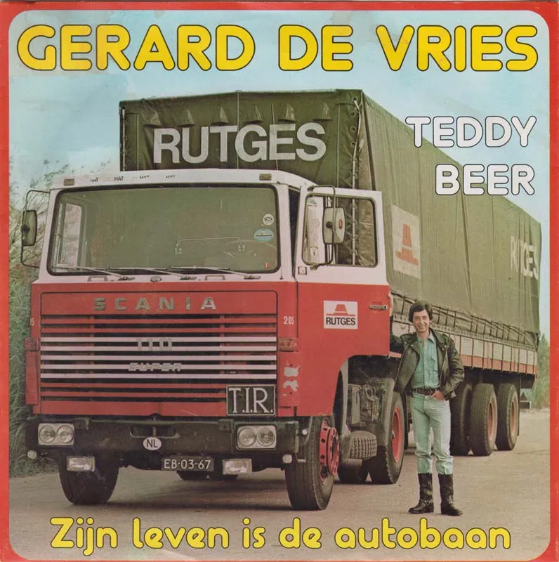 O, een plaat springt er echt uit. Die heb ik zelf ook. Dat is het album Teddybeer van Gerard de Vries. Vooral het nummer Giddy Up Go vind ik geweldig. Het is heel verhalend. Het nummer gaat over iemand die zijn zoon uit het oog is verloren en altijd op de weg zit. Op een gegeven moment rijdt hij achter een wagen waar op staat Giddy Up Go, de wagen blijkt uiteindelijk van zijn zoon te zijn. Het is zo dramatisch en over de top, heerlijk. Het is trouwens niet zo dat ik alle truckermuziek leuk vind. Maar truckermuziek is wel een stijl die meer gewaardeerd mag worden, helemaal van Gerard de Vries."
