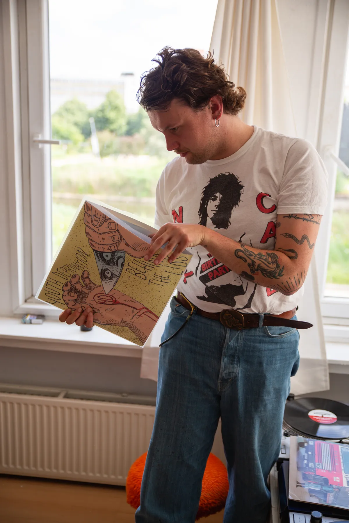 “Bij mijn buurman! Dat is Harmen Ridderbos, van Zeevonk Records en Town of Saints. Een bekende in de Groningse muziekscene. Hij heeft volgens mij wel een interessante collectie.”