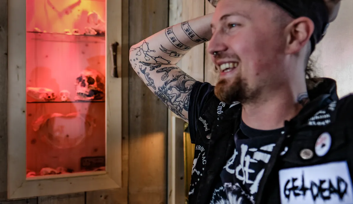 Steven is vroeger vooral opgegroeid met punk. Denk hierbij aan Sex Pistols, The Offspring en The Exploited. “Pure punkrock: hanenkammen, studs, leer, 3 akkoorden rammen, tegen het systeem aanschoppen, dat vond ik heerlijk.” Wanneer er gevraagd wordt of hij dit vanuit huis heeft meegekregen verteld Steven dat het niet per se de muziek was, maar wel de kijk op het leven van punk. “Mijn vader was een beetje vrijheid blijheid. Dat is mij ook altijd wel zo bijgebleven.” Steven heeft vrijheid blijheid ook op zijn arm getatoeëerd staan. “Ik werk nu bijvoorbeeld 3 dagen in de week als meubelmaker. Dat is hartstikke leuk om te doen joh. Zou ik er geen geld voor krijgen dan deed ik het nog. Zo moet je het eigenlijk hebben. Ik omring mij graag met dingen en mensen waar ik blij van word. Daar kunnen heel veel mensen wel een voorbeeld aan nemen.”