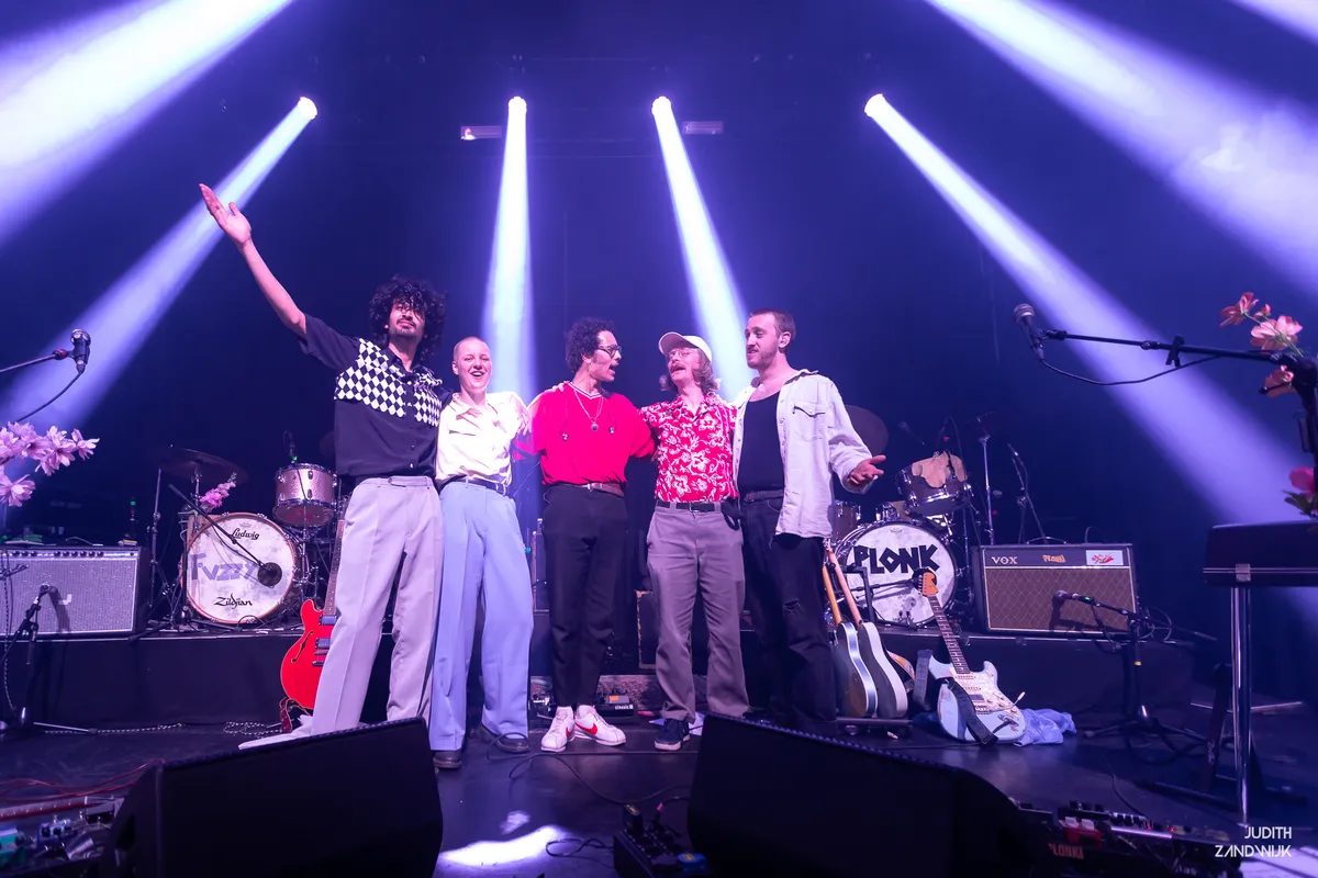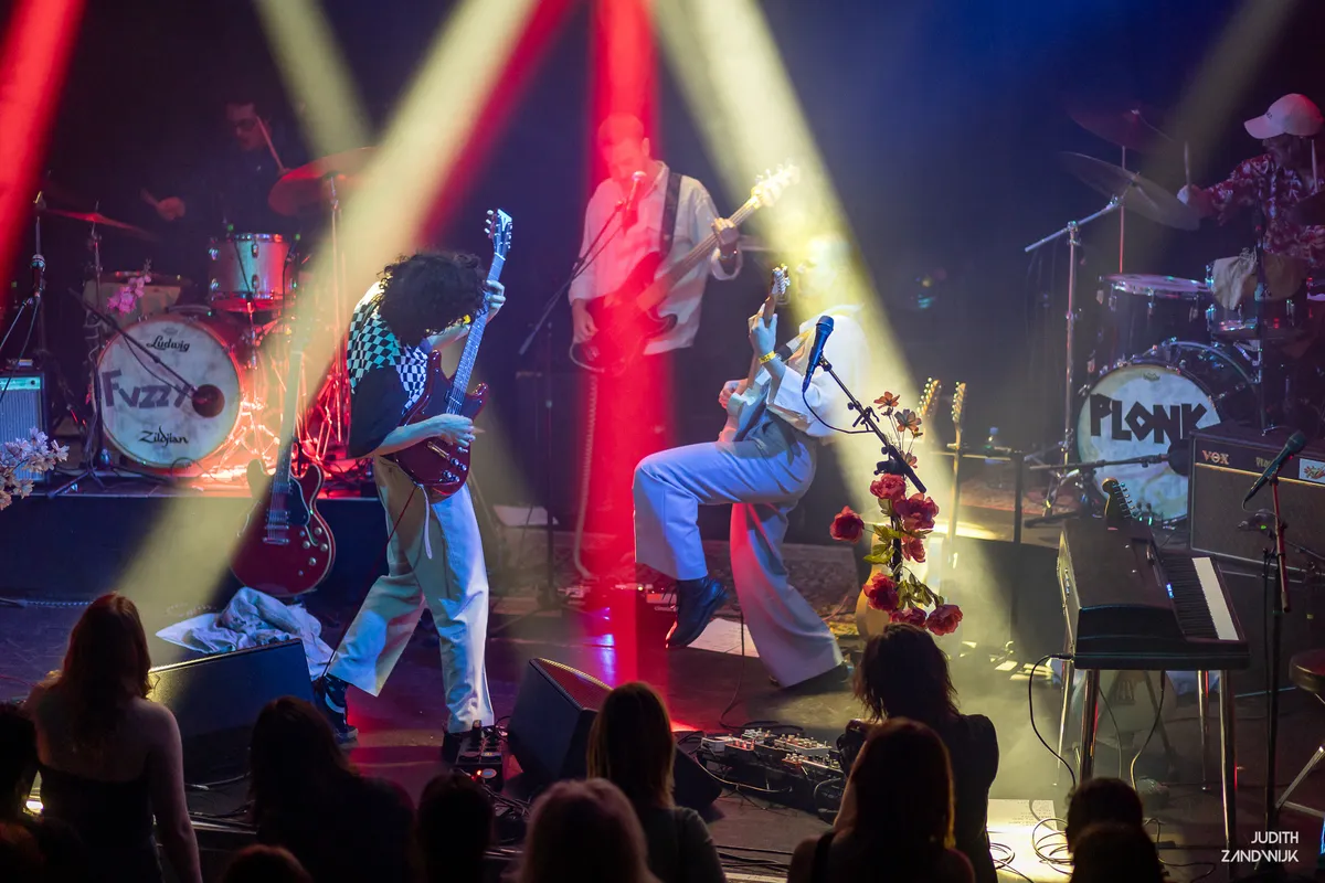 Tussen de nummers door wordt duidelijk dat de samenwerking zorgt voor een goede klik. Stork wordt door Koenn steevast ‘Plonk’ genoemd, terwijl hij zelf als ‘Fuzz’ door het leven gaat. Gedurende het optreden worden er afwisselend nummers van ‘Plonk’ en ‘Fuzz’ gespeeld. Hoewel er duidelijk hoorbaar is dat beide artiesten een eigen stijl hebben en er contrasten in de muziek hoorbaar zijn, vormt er zich een gevarieerd optreden waarin bewogen wordt tussen uitbundige en intieme nummers. De psychedelische klanken van plonki geven de zaal een dromerig gevoel en versmelten op een fijne manier met de ruwere indie pop van FUZZY TEETH. Uiteraard mogen de samen uitgebrachte nummers niet ontbreken.