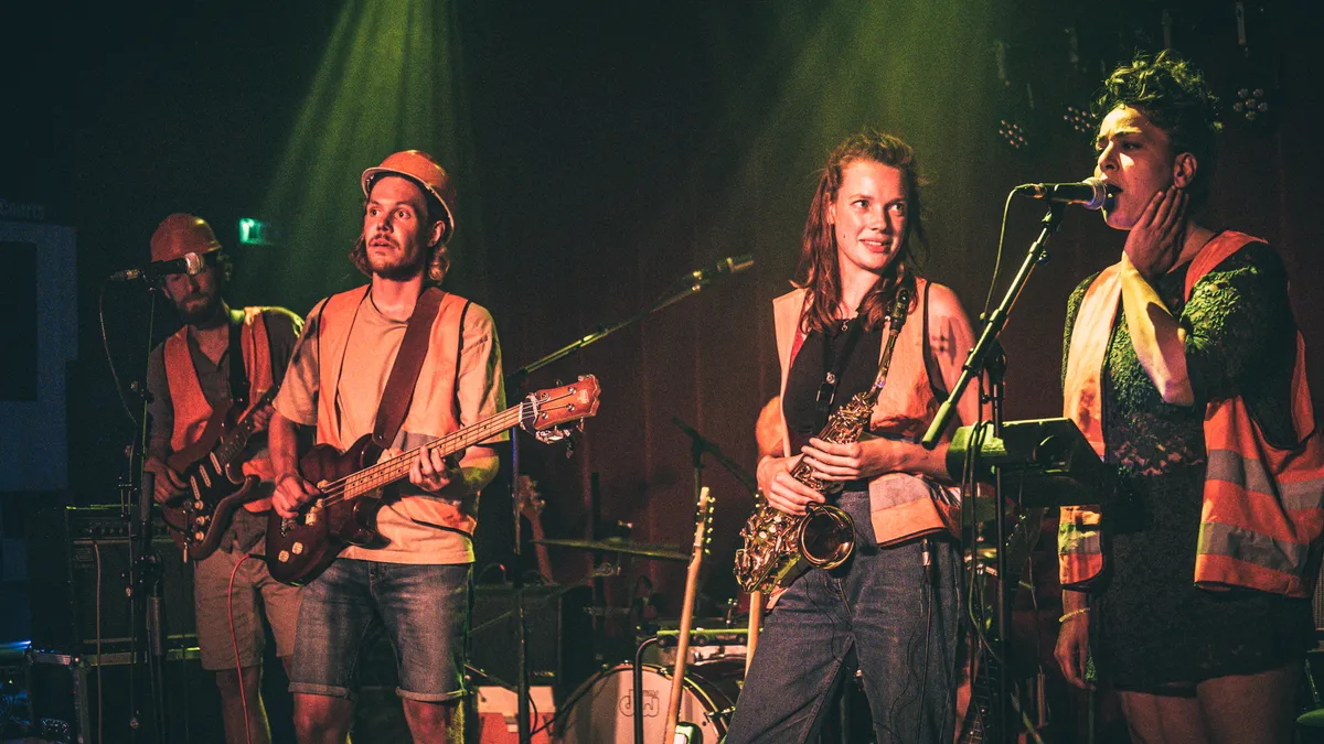 Zoals we gewend zijn van de theatermakende muziekgroep (of muziekmakende theatergroep?) hangt de set houtje-touwtje aan elkaar. Muziekinstrumenten wisselen sneller van eigenaar dan André Hazes van vriendin, wat de vaart er wel wat uithaalt. De teksten zijn echter scherp en filosofisch als altijd en als de groep eenmaal speelt ligt de energie hoog en laat men die niet los. Hoogtepunten van deze show zijn zonder twijfel de aan kleinkunst hangende nummers van Wietse de Haan en de schitterende stem van Sanam Tahmasebi. De Haan krijgt met zijn nummer over Milan, die hij op een avond tegen was gekomen in de Herestraat en die zijn frustraties met hem deelde, zelfs de luid pratende bezoekers aan de bar mee (desbetreffende Milan stond ook in de zaal, echter niet ondergetekende, al zouden we elkaar op sommige punten de hand kunnen schudden).