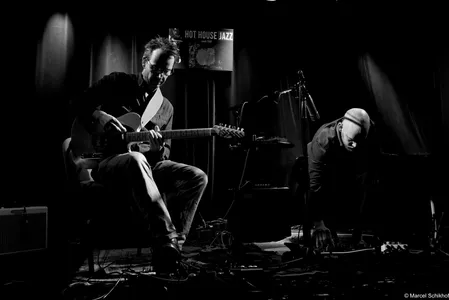 Van Ruller en Hogenhuis hadden in september '24 de release van hun tweede album Follow the Sound'. Afgelopen zaterdag lieten ze Leiden daarmee kennismaken bij Hot House Jazz. Hun eerste album 'Spirits High' was nog een "corona-product", op afstand samengesteld, met ieder z'n eigen composities. Maar voor 'Follow the Sound' is vrijwel alles samen gecomponeerd en opgenomen. De inspiratie voor de stukken kwam van geluid, van tikken op de gitaarkast tot onbekende fluitjes en obscure versterkers.