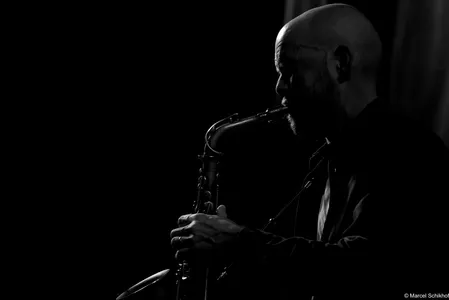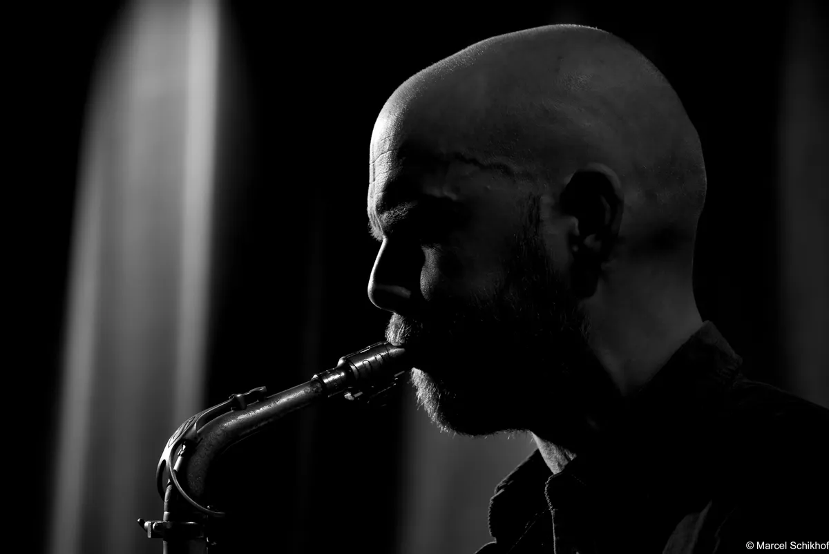Vanaf de eerste noot zit Jesse van Ruller supergeconcentreerd over zijn gitaar gebogen. Dat komt, zo vertelt hij na afloop aan de bar, doordat hij op de gitaar de hele begeleiding speelt. Met een lagere stemming dan normaal kan hij de baspartij spelen, de overige gitaarpartij invullen en tempo en ritme bepalen. Dat vraagt wel concentratie... Maarten sluit daarop aan met zijn altsax en fluiten.