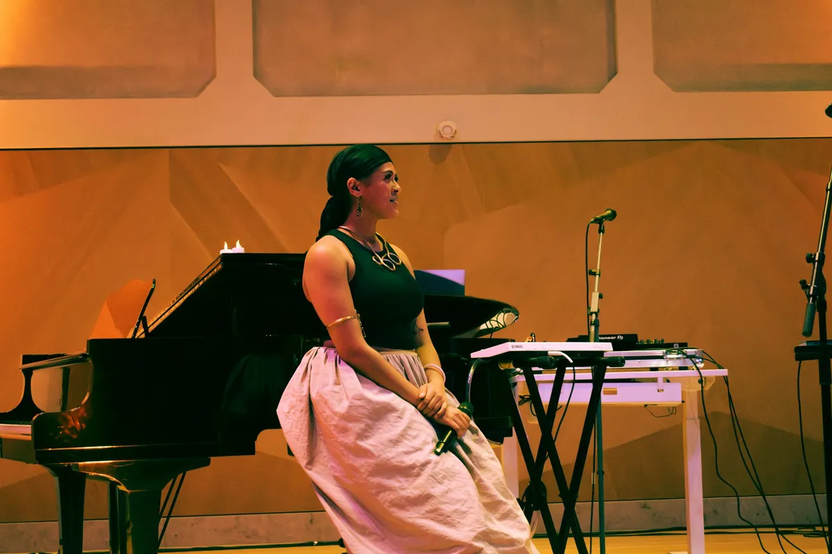 Na een korte pauze neemt Hatoon plaats op het podium. Ze brengt een etherische sfeer naar de zaal, en plots komt de realisatie dat we in een kerk zijn. Gehuld in de blauwe en paarse lichten maakt ze strikt gesproken muziek, maar eigenlijk vervoert ze ons naar een andere plek. Jaren geleden is ze in Nederland gekomen als Sudanese vluchteling, en nu gebruikt ze haar podium om met ons stil te staan bij alles wat daar gebeurt. Met haar krachtige stem en bewegingen bestaat er opeens niets anders meer en overspoelt ze het publiek met een gevoel van melancholie en nostalgie. Ze is feeëriek en reëel, dankbaar maar dringend.