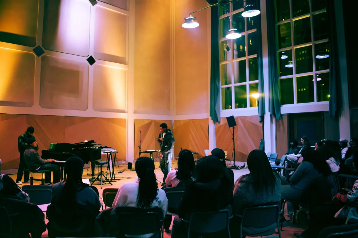 Centraal, maar toch verborgen. Dat is de Muziekwerf - verscholen achter Hofplein en de Meent ligt een tweede thuis voor jongeren tussen de 6 en 26 jaar die hun muzikale interesses willen ontwikkelen. De grote ramen en het orgel verraden dat het gebouw een kerk is geweest, maar vanavond maken we vooral dankbaar gebruik van de akoestiek van het auditorium. Wat is Pure Love? Een toevlucht voor liefhebbers van RnB, neo-soul en hiphop, opgezet door Matt Bonilla. Een plek voor jonge muzikanten om zichzelf te ontdekken, om te spelen met geluid, om te groeien als artiesten. Onderdeel van Cult North, een initiatief dat zich richt op kunsteducatie en passie ontwikkeling voor jongeren in Rotterdam.