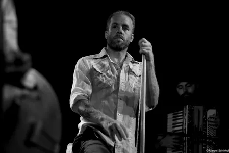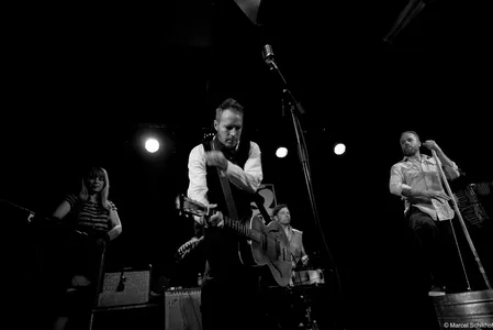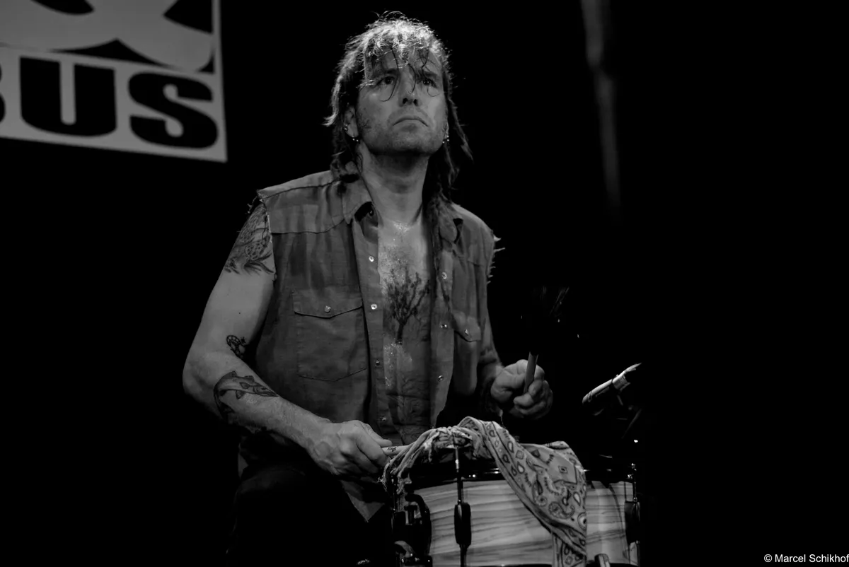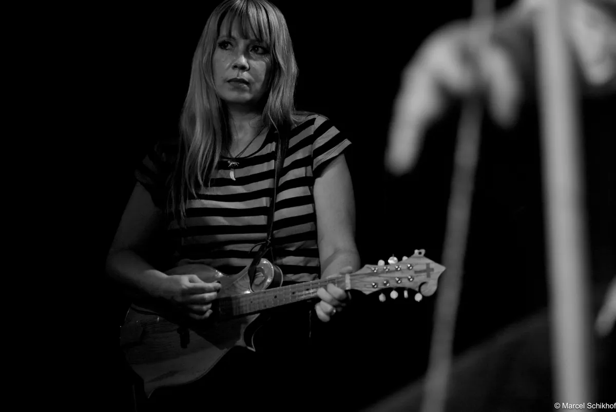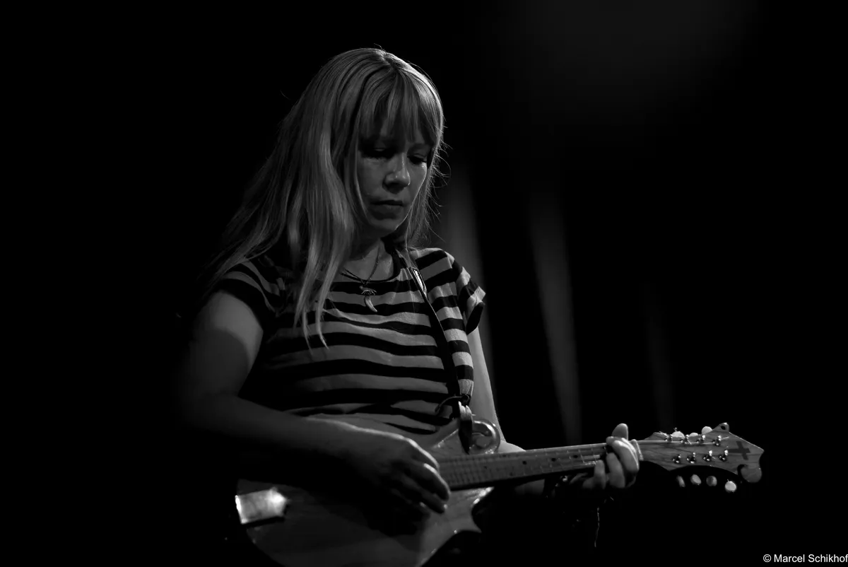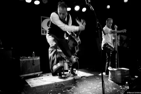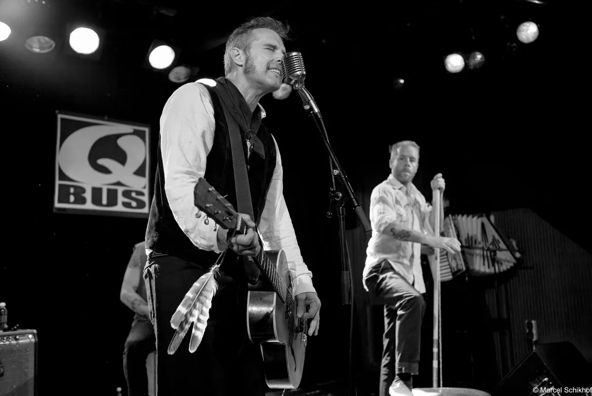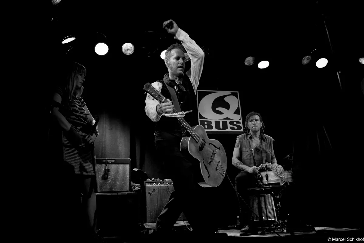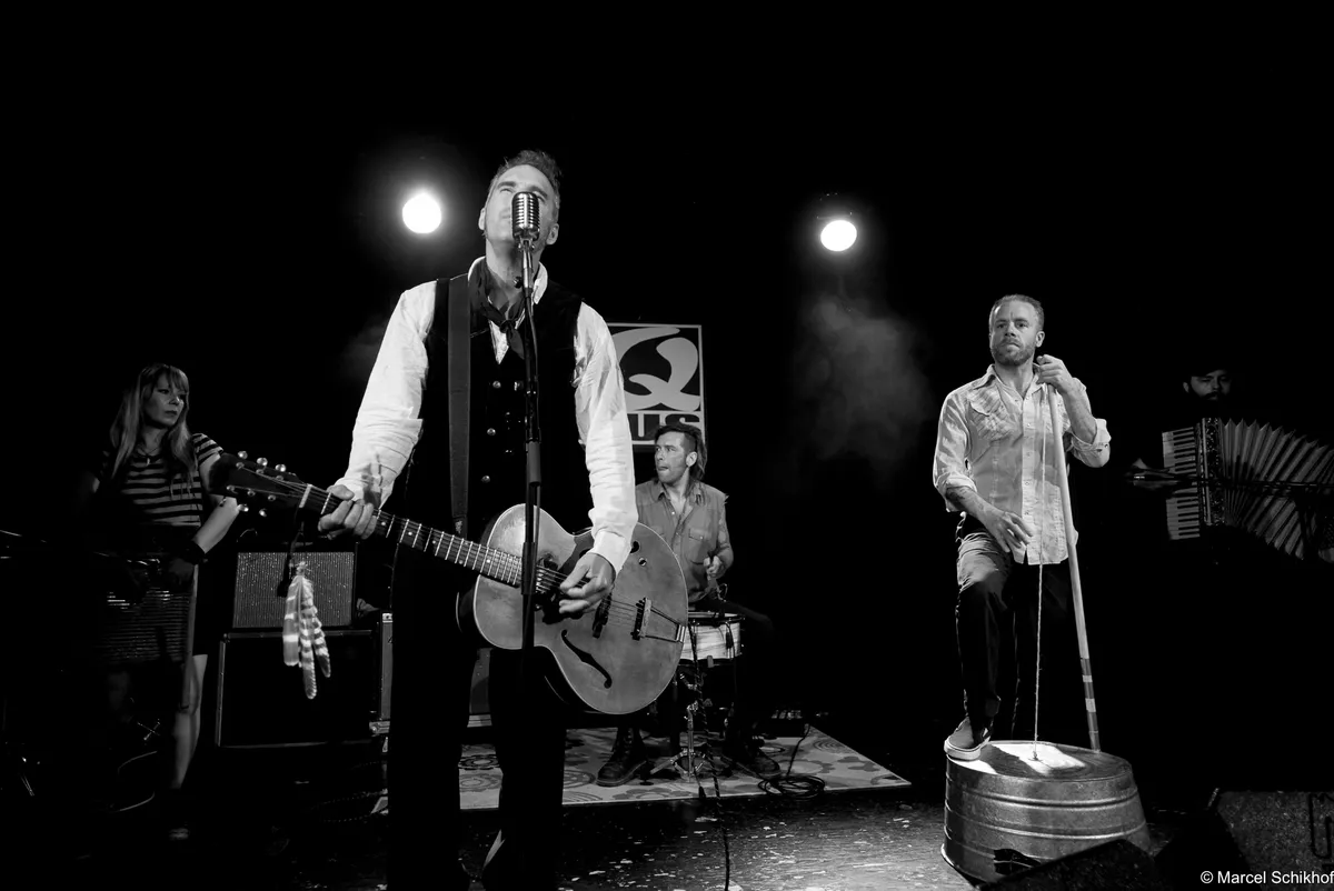 De boem boem boem van de bas doet denken aan de hoempa hoempa hoempa van een bombardon, zoals je die in de dorpsfanfares diep in Limburg en Duitse dorpjes nog kunt horen. De opzet, met de wasteil-bas, de simpele snars drum… Als we onze ogen toeknijpen, zien we ze zo staan tussen de balen hooi op het lentefeest van een boerengemeenschap in 1834, ergens in de groene bergen. Net als deze bijzondere set up begint te wennen, pakt Kat een zingende zaag met een aplomb alsof ze de afwas aan het doen is: alledaags. Aan haar voeten ligt een vooralsnog nog een mandoline. Voorafgaand aan deze avond hadden we niet op voorhand gezegd dat een zingende zaag heel goed samen gaat met een fiddle zoals nu met die van zanger Jamie… maar nu is het volstrekt vanzelfsprekend. De band zet een true classic Northern Alabama Cowboy song in die heerlijk vol zit met “yippee kajay”’s en “hee haa”’s zonder dat dit ergens een pastiche wordt. Ironie voelen we niet, enthousiasme des te meer.