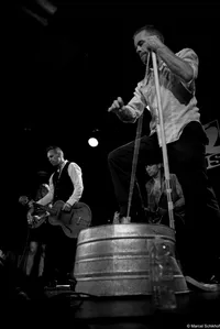 Voor nu trappen The Pine Hill Haints af met een mix tussen rockabilly en folk. Lekker als dat is, nu al drie korte nummers lang, kijken we nog steeds met verbazing naar wat hier als bas opereert: een aluminium teil met uit het midden een stuk henneptouw dat boven weer vast zit aan, tja, het is echt een bezemsteel! Ian Blackburn speelt deze washtub bass zonder hoorbaar verschil met een reguliere staande bas. Als we onze onderkaak weer van de grond hebben, zien we op links Kat Barrier het wasbord bespelen. Dat er een drummer is, zal u niet verbazen, wel dat hij enkel speelt op een snare drum. En dan ook nog eens alleen met kwastjes!? Dat er een accordeonist op het podium staat, is daarbij vergeleken bijna standaard.