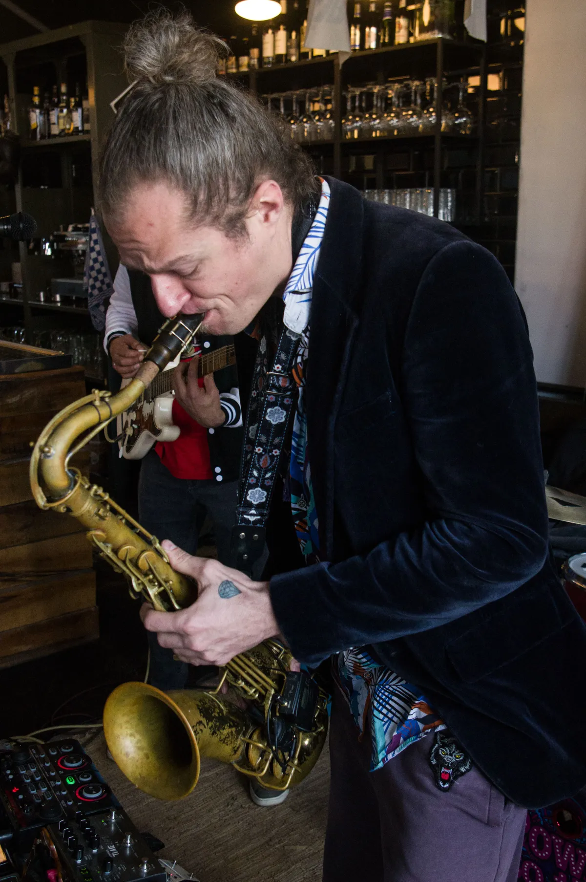 Dan volgt nog een band uit Gelderland: Power to the Pipo. Vanaf hun eerste soundcheck laat de vierkoppige band gelijk hun muzikaliteit horen. Het is een heerlijke melange tussen jazz en funk, met een hoofdrol voor saxofonist Michiel Sonnevijlle. Een half uur lang neemt hij samen met de bandgenoten het plaatjesflappende publiek mee in hun feestje. De bezoekers genieten er zichtbaar van en een enkeling danst – weliswaar op zijn hoede – mee op het ritme van de band. (Teun)