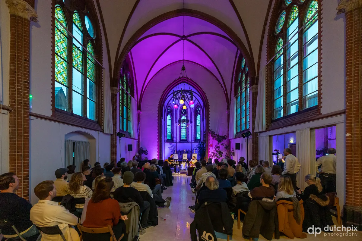Na een klein uur geeft het duo aan dat het tijd is voor de laatste song. “Ik zou graag zingend de kerk uit gaan.”, grapt Jesse als hij vraagt om een klein stukje publieksparticipatie. De song die volgt is een ode aan het stadspark De Verademing, op de grens van Transvaal en het Regentessekwartier. Een belichaming van de, eerder genoemde, dualiteit en een inspiratiebron voor de frontman. De twee zinnen die het publiek moet meezingen, worden eerst weifelend ingezet maar na een paar maten durft iedereen echt mee te doen en klinkt het, in combinatie met de akoestiek van de kapel, als een passend achtergrondkoor.Hierna volgt een toegift opgedragen aan een aanwezige vriendin en is de show voorbij. Een show die even uitgedacht als spontaan voelde, waarbij iedere aanwezige zich welkom zal hebben gevoeld en waar de muziek ook nog eens erg goed was.