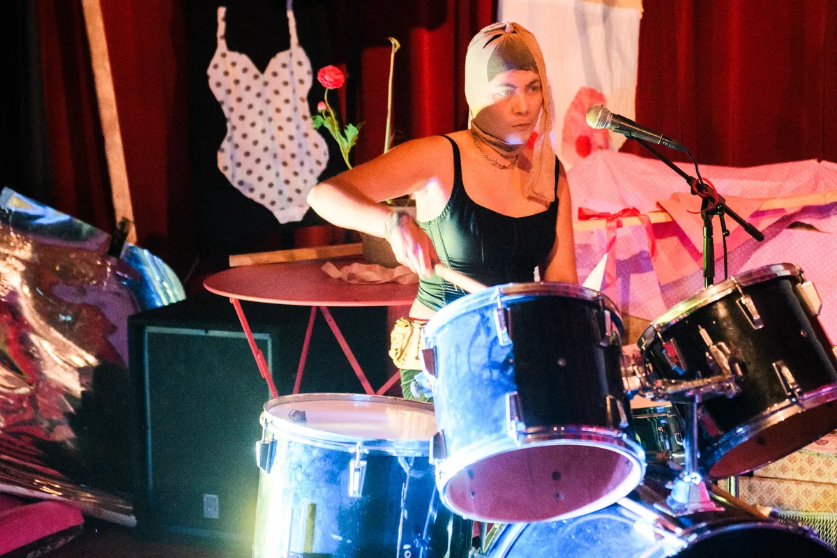 Murf/Murw is een interdisciplinair festival met veel aandacht voor performance, beeldende kunst en dergelijke, maar ons gaat het uiteraard vooral om de muziek. Voorafgaand aan het optreden van Khanjar krijgen we toch nog een stukje ‘spoken word’ mee van Alireza Abbasy, die ons een inkijkje geeft in de belevingswereld van de slak, een dier dat zich, aldus Abbasy, moedwillig traag voortbeweegt bij wijze van protest tegen deze al te snelle wereld. De bezwerende, meditatieve klanken waarmee Khanjar haar set begint, sluiten goed aan bij deze oproep tot vetraging. “In het programmaboekje staat Khanjar Trio, maar het zijn er veel meer,” zo klinkt het naast ons, en hoewel er in dat boekje wel degelijk een ‘+1’ aan is toegevoegd, tellen wij er inderdaad wel vijf: vier instrumentalisten (op drums, gitaar, tenorsax en bas) plus een vocaliste, die ons in het Frans toespreekt. De set volgt een lijn die je wel vaker in de geïmproviseerde muziek ziet: de spanning wordt langzaam opgebouwd, ontlaadt zich in een stevige climax om vervolgens weer in kalmer, meditatiever vaarwater te geraken. Khanjar doet dit alles uitstekend, niet in de laatste plaats door het gedreven, opzwepende trommelwerk van Tjalling de Leeuw.