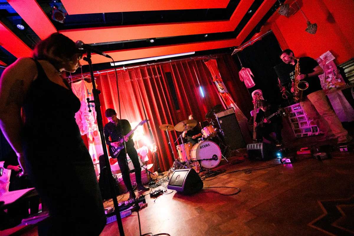 Het blijft altijd spannend om in deze post-lockdownperiode een festival of evenement te organiseren. Weet het publiek de weg naar je happening, waar je zoveel tijd in hebt gestoken, weer te vinden? Dat geldt al helemaal voor een relatief nieuw festival als Murf/Murw, dat door de coronamaatregelen nog geen echt ‘volwaardige’ editie heeft gekend. Gelukkig blijkt bij onze binnenkomst op deze zaterdagnamiddag dat het kijkvolk wel degelijk in groten getale is komen opdraven; de mensen die zich even na vijven naar de (toegegeven, ook niet al te grote) Rode Zaal van de Vorst begeven voor het optreden van improvisatiegezelschap Khanjar, moeten zich al weldra naar binnen wurmen.