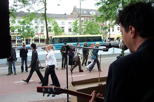 Het fenomeen guerrilla-gig waait langzamerhand over van Engeland naar Nederland. Ruim een maand geleden vond op de toekomstige locatie van Doornroosje zo'n spontaan niet groots aangekondigd optreden plaats. In de late middag van donderdag 2 juni knalde in Arnhem de tweede 3VOOR12/Arnhem-Nijmegen guerrilla-gig over straat.