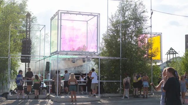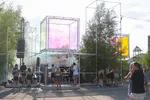 Terug naar de muziek. Waar in de binnenruimtes al de hele dag snoeiharde tonen klinken, wordt ook buiten het tempo flink omhoog geschroefd. In de Dome waren eerder op de middag al vlagen van 90s acid te horen, en daar vanavond wordt diezelfde toon doorgezet door Nederlandse dj’s Nuno Dos Santos B2B Joannes. Dat geluid wisselen ze af met technokrakers als Electric Deluxe (van jawel, Speedy J). Het zorgt voor een extatische sfeer in deze ronde stage. Nu het donker begint te worden, begint de ronde lichtstraal aan het plafond op te lichten. Hiermee doet deze stage denken aan een kleine versie van de Helling op Wildeburg.