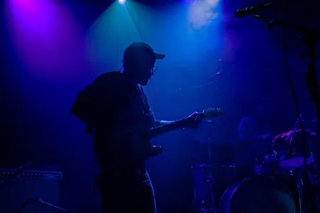Na een kleine pauze zet Elephant in met ‘Post-Punk’, de introsong van hun laatste plaat Shooting for the Moon. Het publiek is muisstil en daardoor komt de fluisterzang en het fijne gitaarspel extra goed tot zijn recht; de toon voor de rest van de avond is gezet. De set is een goed afgewogen mix van de intieme, dromerige songs van de nieuwste plaat en de meer upbeat, zomerse nummers van de debuutplaat Big Thing. De sfeer is ontspannen en als we onze ogen sluiten neemt Elephant’s nostalgische geluid ons mee naar die ene zwoele zomeravond in augustus. De nonchalance waarmee het viertal op het podium staat, en de big smile van de drummer, werkt behoorlijk aanstekelijk.