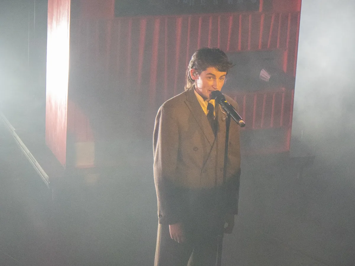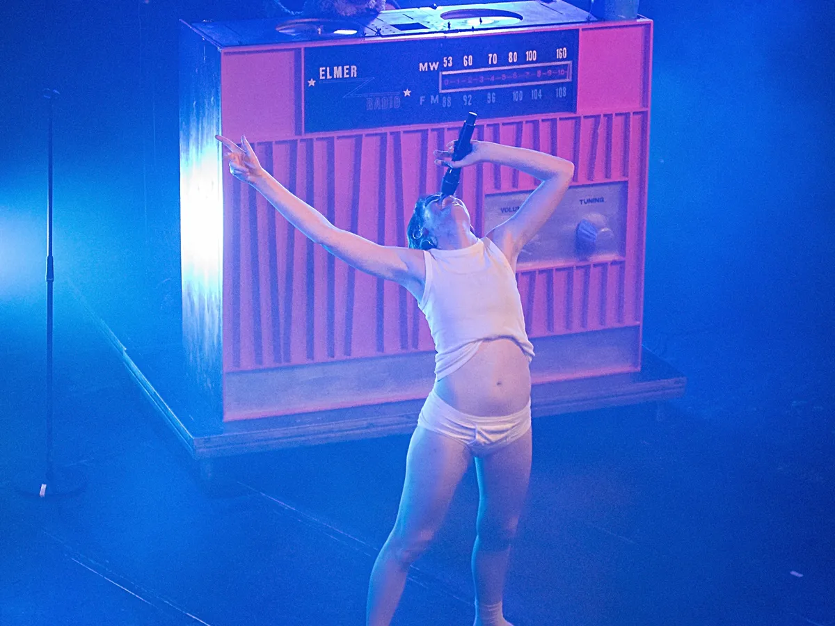 Dat Pauw een achtergrond in de theaterwereld heeft, is overduidelijk. Zo is er een decor, iets wat je in concerten van deze grootte nauwelijks ziet. Ze komt op in een wollen pak, compleet gemaakt met stropdas, loafers en een plaksnor. Die plaksnor valt overigens na het eerste lied al af, een recordtijd deze tour. Met deze outfit introduceert Elmer het overkoepelende thema van het concert, en eigenlijk al haar muziek: identiteit.