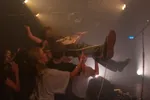 De volgende band pompt een aanstekelijke mix van zware maar ook catchy geluiden over het publiek heen. Nomads Radio komt uit Enschede en maakt garage surf punk met stalen neuzen. Zo koel en beheerst als de bastonen van Tuesday Peepshow werden overgebracht, zo wild en eclectisch bespeelt Jelle Beumer hier zijn instrument. Er wordt gestuiterd en wijdbeens gebanjerd over de gehele breedte van het podium terwijl de viersnarige akkoorden ronkend uit de versterkers dreunen. Gitarist en zanger Jesse Pot grijpt holderdebolder de mondharmonica er nog even bij en drummer Nanne Hatzman laat het tempo geen moment zakken. Anders dan de Deventenaren die voor hen op het podium stonden, richten de heren van Nomads Radio zich slechts sporadisch tot het publiek, behalve dan om aan te kondigen dat hun nieuwe single ‘Burned Out’ vanavond uit is. Ondertussen breekt het eerste kleine moshpitje van de avond linksvoor in de zaal uit, een duidelijk teken dat het drietal erin slaagt hun energie over te brengen op het publiek dat op donderdagavond enthousiast is komen opdraven.