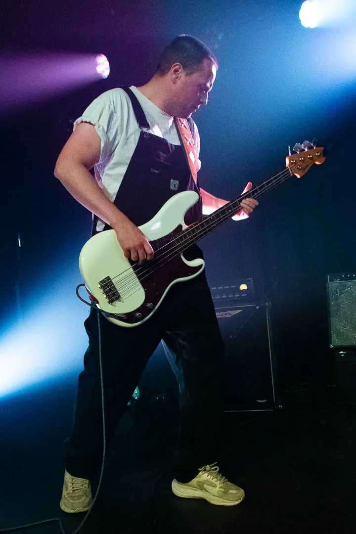 Het viertal uit Deventer -lokaler wordt het niet!- schijnt te winkelen bij dezelfde kledingzaak als psychrockers King Gizzard and the Lizard Wizard: al bij opkomst lijken de roze overall van zanger Lars Bergman en en denim tuinbroeken van de rest van de band een knipoog naar het Australische zestal. Of het is natuurlijk andersom, en is Tuesday Peepshow misschien de mode-inspiratie geweest voor de afgelopen tour van Stu Mackenzie en kornuiten. De Deventenaren spelen onvervalste 70’s blues rock maar verbluffen vanaf de eerste noot dankzij het virtuoos gitaarspel van Jan Bulder en het basspel van Nando Wiarda, die met een strakke blik haarfijn de groove aanvoelt. Samen met drummer Joeri van de Poel vormt hij een koele ritmesectie die de ideale basis is voor de capriolen van de twee gitaristen. Lars ontbreekt het ook niet aan een gezonde dosis humor, blijkend uit de grollen die hij tussen de nummers door aan de man brengt: ‘We hebben alleen stickers als merch, en zelfs die zijn we vergeten!’. De muziek swingt, slaat nu en dan erg onverwachte hoeken in en het speelplezier spat er vanaf. Tuesday Peepshow is een dosis nostalgische vrolijkheid die perfect past in de indrukwekkende rij Overijsselse rockers waartoe ook Tricklebolt, The Grand East en Money & The Man behoren.