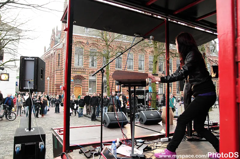 Het rijdende podium van Luxor hield haar twee stops deze keer op het Jansplein en het Kerkplein voor Cafe Dudok in Arnhem. Wat geharrewar met plaatselijke marktkooplui mocht de pret niet drukken. Krause pompte haar harde electroclash gewaagd de pleinen over.