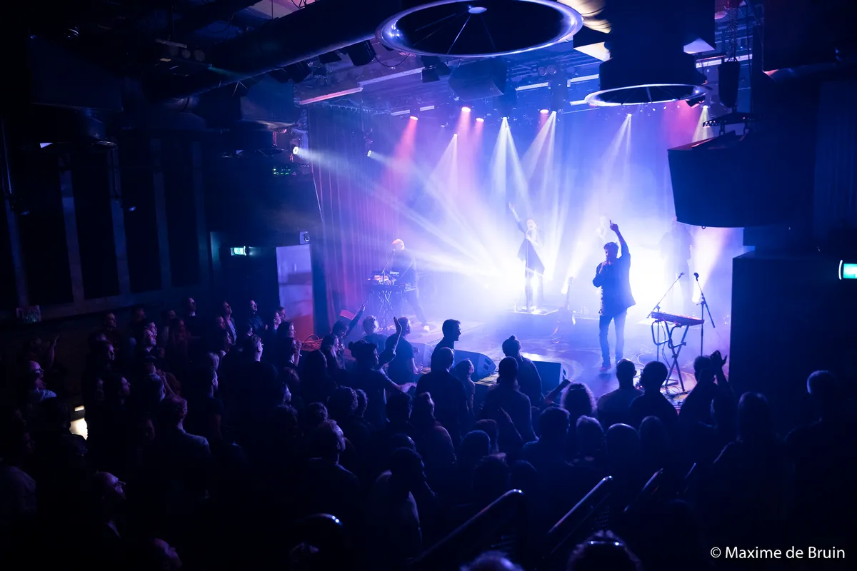 Goed, genoeg gevoelens. “We gaan de club in!” Met een bijna trance-achtige uitvoering van ‘Als de rook om je hoofd is verdwenen’ komt de energie met ode aan Boudewijn de Groot weer helemaal terug in de zaal. Met het bouncende ‘In Het Donker’ over “spoken in je hoofd” is het publiek nu bekend met alle vier de nummers van EP De Onheilsprofeet. Via bubbels die je kunt ontvluchten door te praten met je buurman gaan we met ‘Een Droom’ naar de climax van de avond.