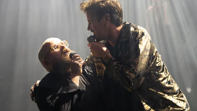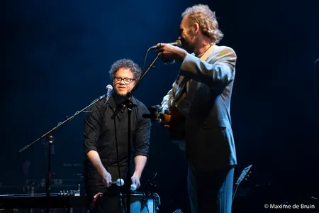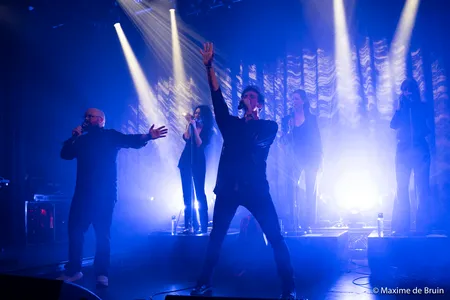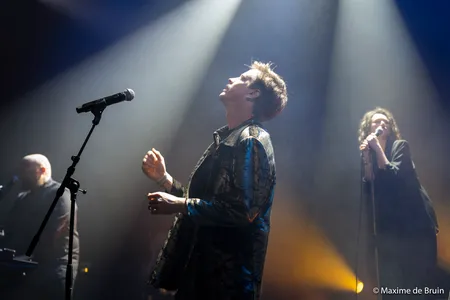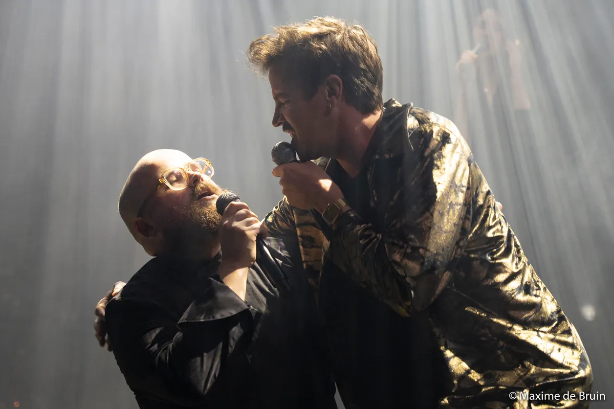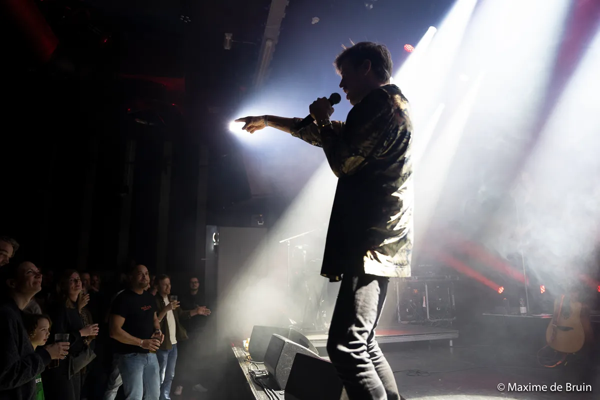 Na een kleine verbouwing komen de drie achtergrondzangeressen en Sebastiaan Openhaart het podium op, die meteen zijn synth aan knalt om de spanning op te bouwen. Frank Westbroek onderstreept met een inleiding in de vorm van Spoken Word (“Ik wou dat als ik de muziek was, jij naar mij zou luisteren”) dat het vanavond om de teksten draait. Daarna is het tijd voor de man zelf: Jelle Imbos. In een gouden jas betreedt IMBOS onder luid applaus het podium in de Kleine Zaal van PAARD.