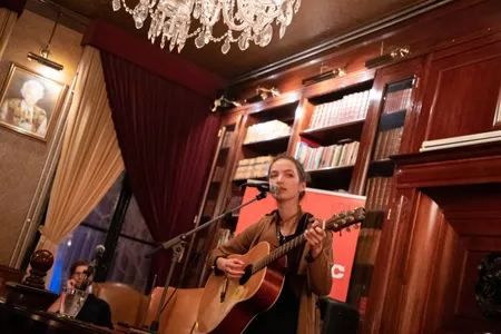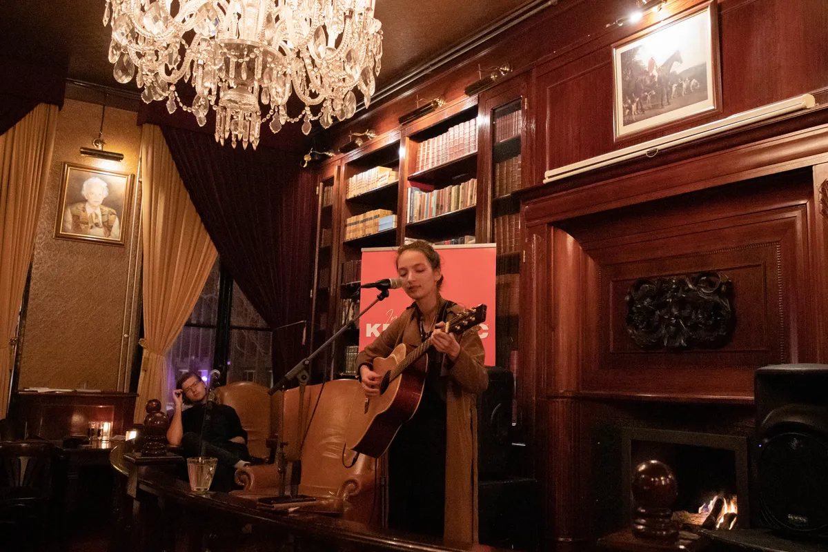 Waar ze op andere locaties nog solo speelde, heeft Bellis bij haar laatste optreden voor Hit The North een band meegenomen. De band, bestaande uit Dirck Kroes (drums), Lendert Andel (gitaar/piano), Sebastiaan van Sliedregt (bas/synth) en Yrsa Joosten (achtergrondzang) weet prima mee te gaan in de stemming die het nummer op dat moment nodig heeft. Het is een beetje vol op het kleine podium, maar toch weet Bellis prima het middelpunt vast te houden. Tussen de liedjes door is ze nog steeds de verlegen Madelief Gal, vooral als ze nerveus lacht en zegt: “Wat zijn jullie met veel."