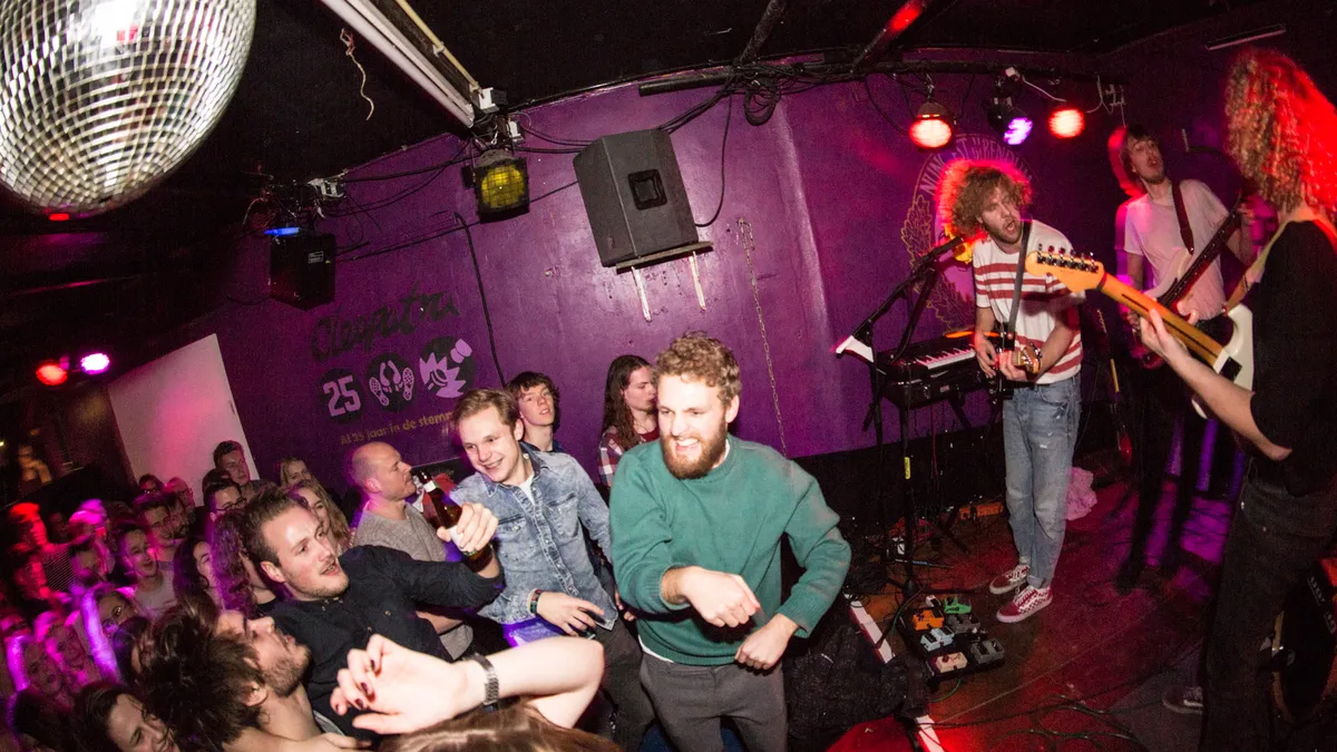 Wanneer halverwege januari de wildgeparkeerde buitenlandse busjes in de binnenstad verschijnen, weet je het wel: Eurosonic Noorderslag is begonnen. Tijdens het vierdaagse showcasefestival komen muzikanten uit alle hoeken en gaten van Europa om in Groningen hun kunsten te vertonen. Van een fijne vergoeding kunnen ze alleen maar dromen: geen enkele act krijgt betaald. Eurosonic is een kans om nieuwe, relevante contacten in de muziekwereld te vergaren. Lokale acts pikken hier een graantje van mee tijdens Grunnsonic, een gezamenlijk initiatief van ESNS en POPgroningen. Op donderdagavond wurmt 3voor12 groningen zich in de volgestroomde benedenzaal van studentenvereniging Cleopatra om te kijken hoe de organisatie daar heeft uitgepakt. Oorspronkelijke publicatie 19 januari 2018