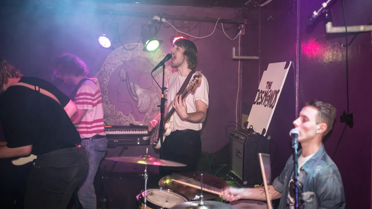 Na deze set komen The Desmonds ten tonele. Zelf vergelijken deze nieuwkomers in de Groningse muziekscene zich met Arctic Monkeys en The Kooks. De pentatonische lijntjes die deze heren uit hun felklinkende Fendergitaren trekken, rechtvaardigen deze vergelijking. Met hun gelikte sound en de nonchalante surfuitstraling creëren The Desmonds een aangename Britse zomervibe. Blijkbaar heeft het publiek hier tijdens deze donkere dagen wel behoefte aan: er wordt gretig gedanst en gesprongen, en er ontstaat zelfs een moshpit!