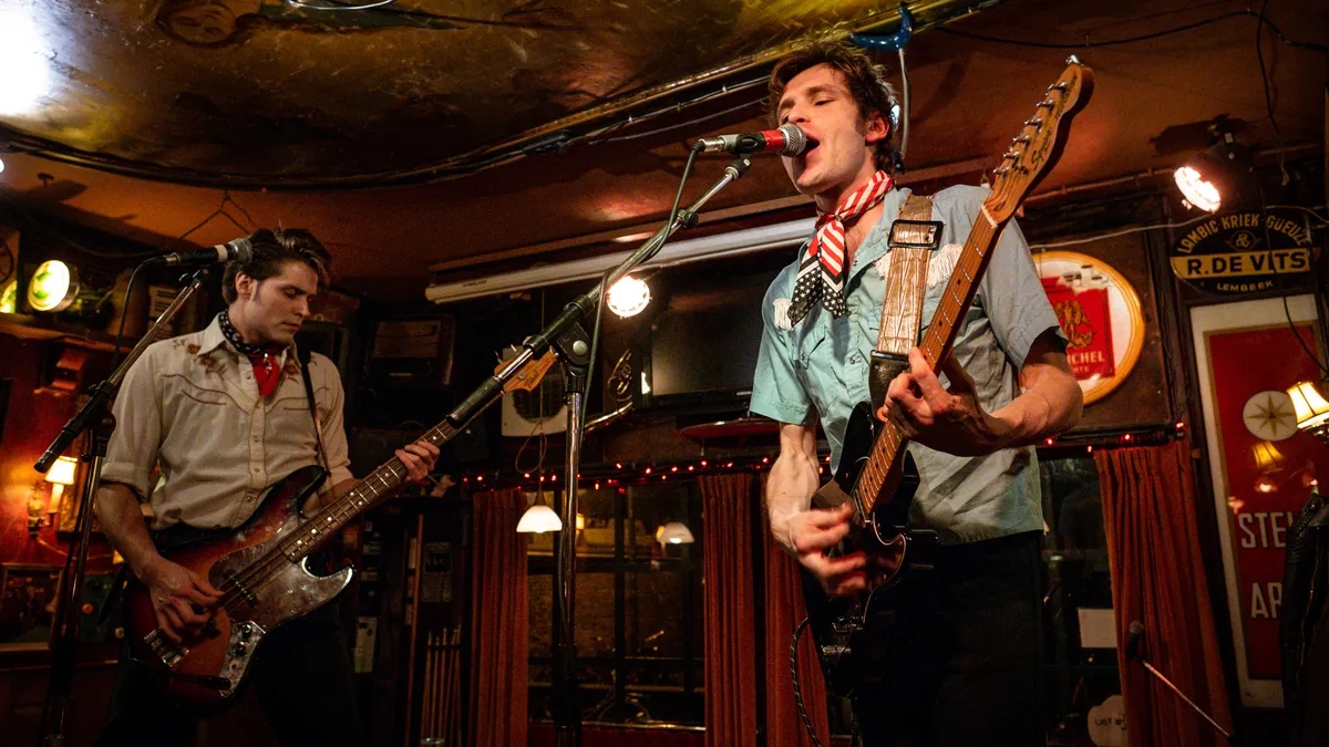 Het is inmiddels ver na middernacht en de kroeg is al aardig vol gestroomd als Spray Tans het biljart bestijgt. Het biljart? Jawel, in de garage van Klaas is dit een essentieel onderdeel van het podium. Dit trio uit Amsterdam heeft misschien een wat gimmicky naam en Facebook info, maar de muziek is verrassend veelzijdig en toch de hele tijd catchy. Post punk met powerpop, garage invloeden en een scheut Americana om het maar eens proberen te beschrijven. Daarbij ogen de mannen strak met hun kuiven, Wrangler sta-prest broeken en countryhemden. Lekker ook om weer zo'n ouderwets dominante basgitaar te horen. Een band die we hopelijk snel nog eens in Vera Downstage gaan terugzien!