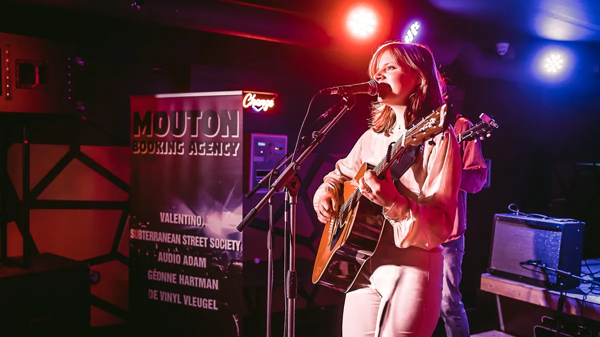 De showcase van de Mouton Agency begint een uurtje voor etenstijd met Géonne Hartman. In De Drie Gezusters klinkt van alle kanten muziek. Van onder, boven, rechts en links slaan verschillende genres je om de oren. Ondanks dat weet Hartman je mee te nemen op reis.
