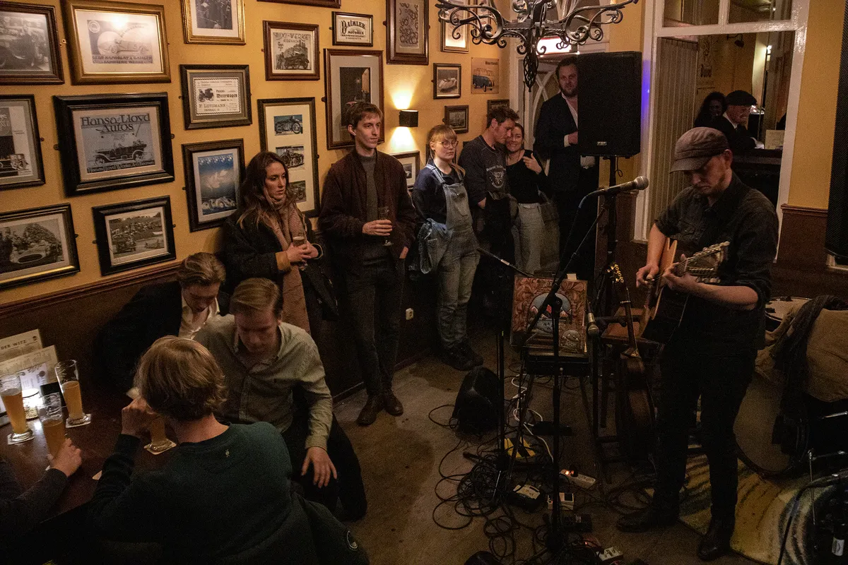 Na deze drie artiesten is het tijd om verder te gaan naar Irish pub O’Ceallaigh. Hier staat het zo mogelijk nog voller: aan de voorkant sta je bijna op het podium. Bij binnenkomst staat de band, Global Charming, nog even te stemmen. Dan komt de kroegbaas het podium op om ze voor te stellen. Hij vertelt dat ze uit Amsterdam komen, dus dat levert enig sportief gejoel op. Aan het begin van hun set ogen ze redelijk verveeld, wat voor een wat onzekere sfeer in het publiek zorgt. Nadat iedereen begrijpt wat de bedoeling is, komen ze langzaam los. Ook de bandleden zelf laten steeds wat meer plezier in het optreden zien, wat zeker mee helpt. Naarmate de set vordert spelen ze ook hun wat meer levendigere nummers. De nummers, die bestaan uit ietwat repetitieve gitaarloopjes en zeurderige zang, geven de boodschap die ze willen uitdragen goed weer: de dagelijkse sleur van een volwassen leven is kut. Dat kan het publiek wel waarderen, en we kunnen stellen dat Global Charming in de smaak valt. Het voelt jong en bijna puberaal, op de beste manier mogelijk.