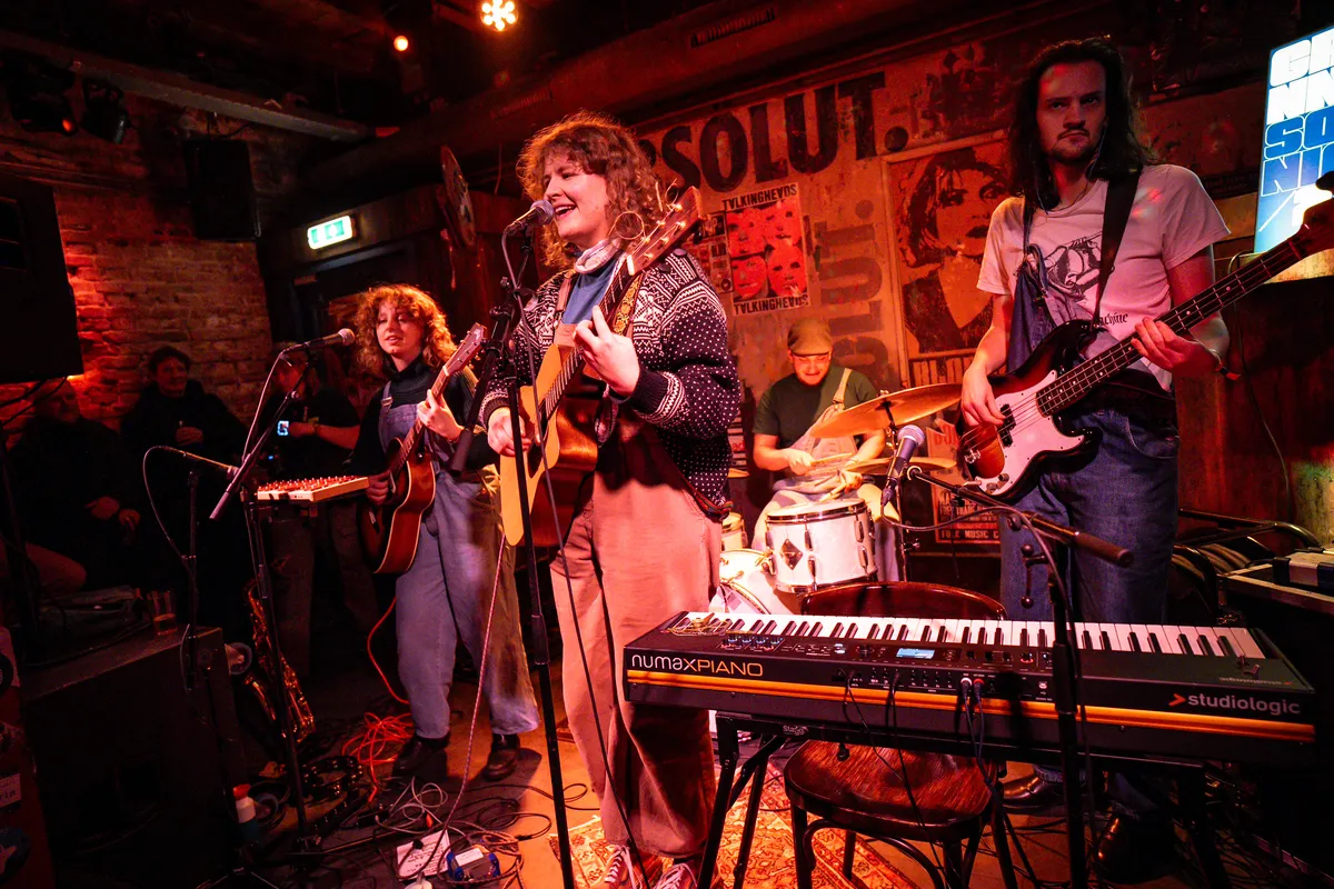 In het Pakhuis word je begroet door posters van 60 jaar pophistorie aan de wand. Zo’n backdrop doet denken aan legendarische clubs als CBGB’s in New York. Iedere band mag blij zijn om zo’n mini-poptempeltje te spelen. Marit Nygård en de Medemensen oogt behoorlijk onder de indruk van de volle bak. Niet nodig, want het publiek is vriendelijk en steunt de band, die onder aanvoering van Marit met verve een set vol Nederlandstalige liedjes speelt. De liedjes komen deels van de afgelopen jaar verschenen eerste EP De Fucking Sukkel. Goede muzikanten, mooie liedjes.